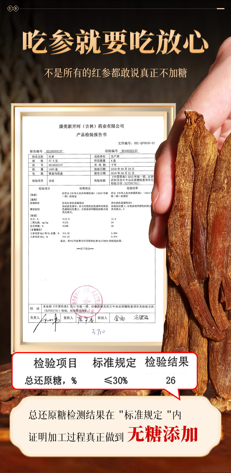康美新开河红参37.5克 大地红参铁盒装 含服泡水煲汤滋补泡酒药材多规格可选