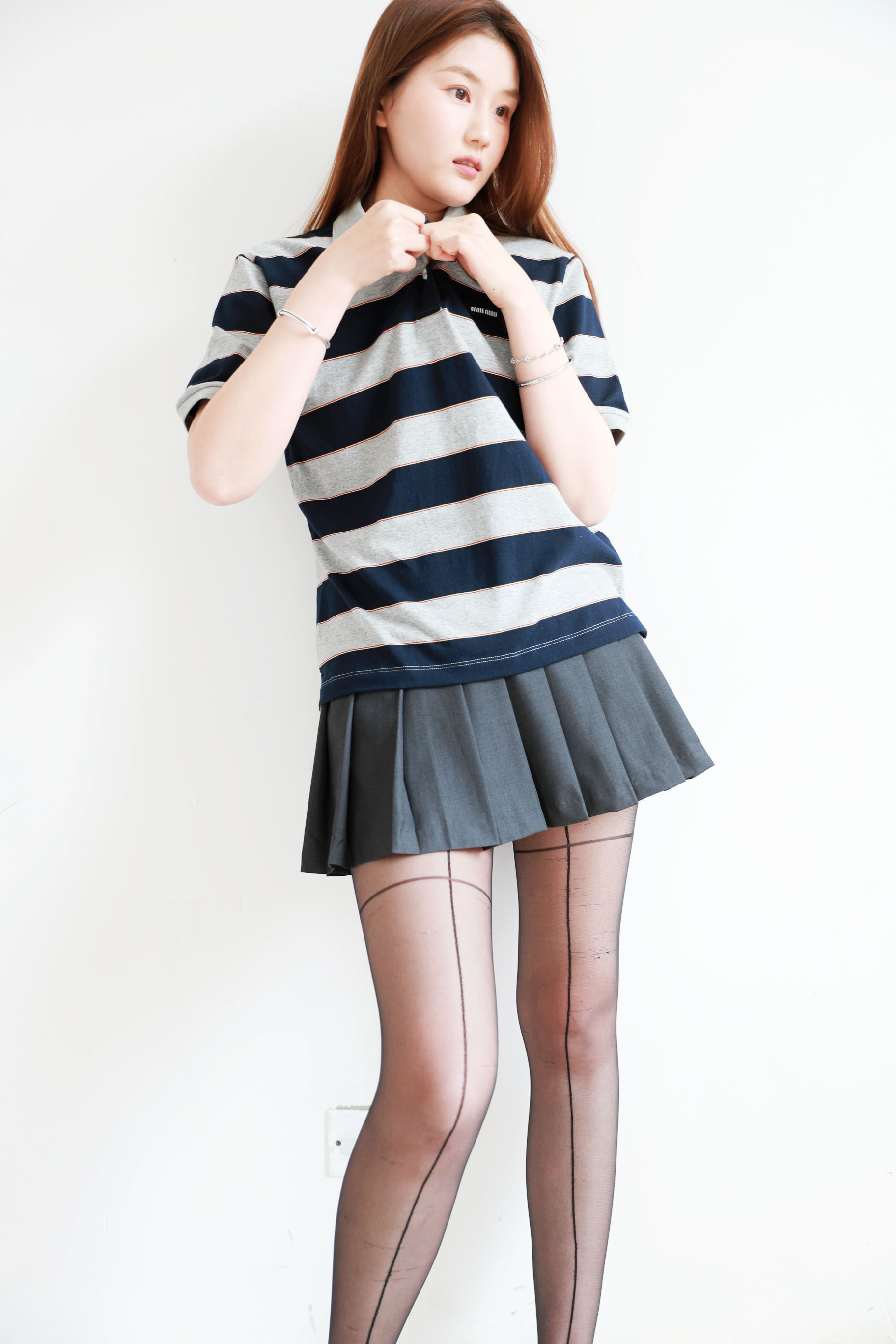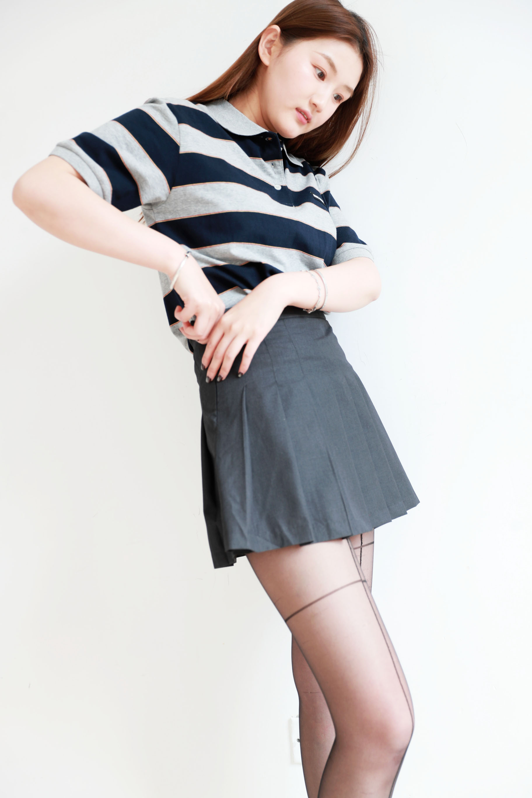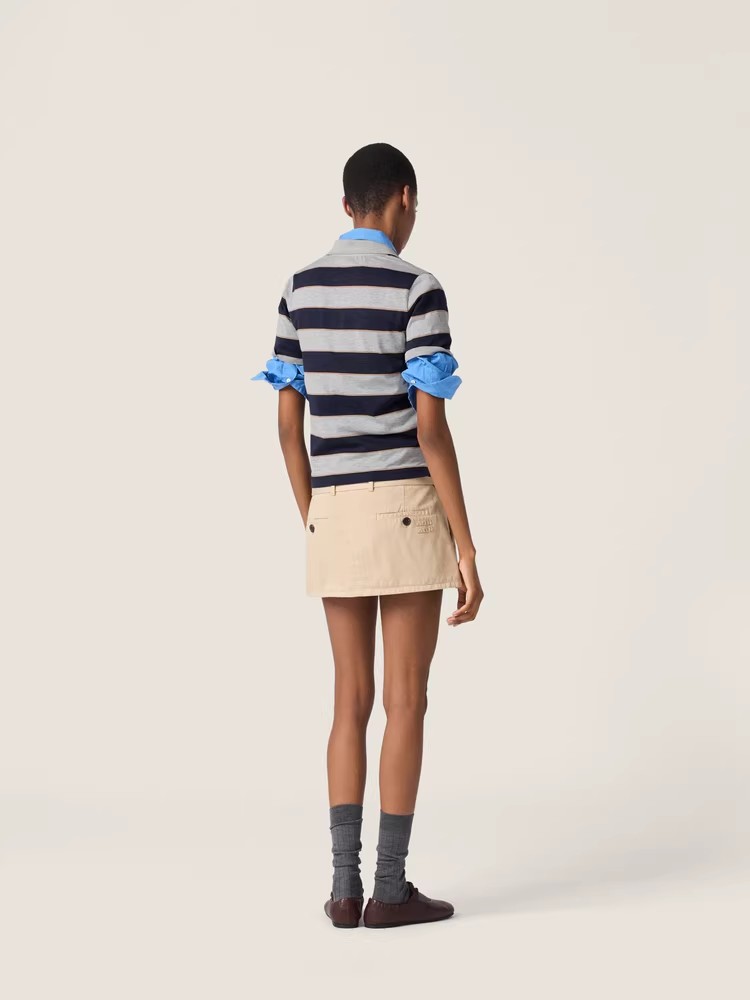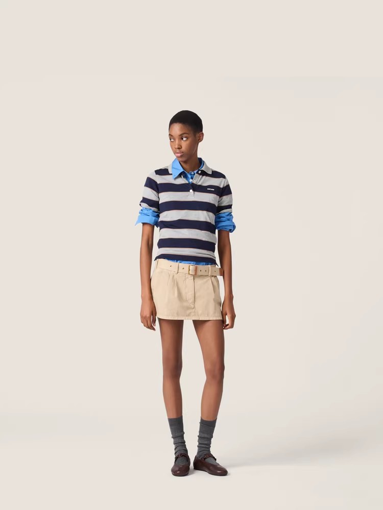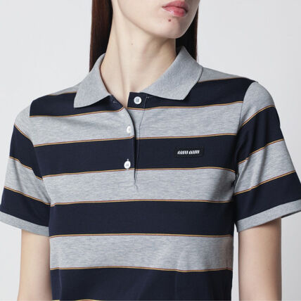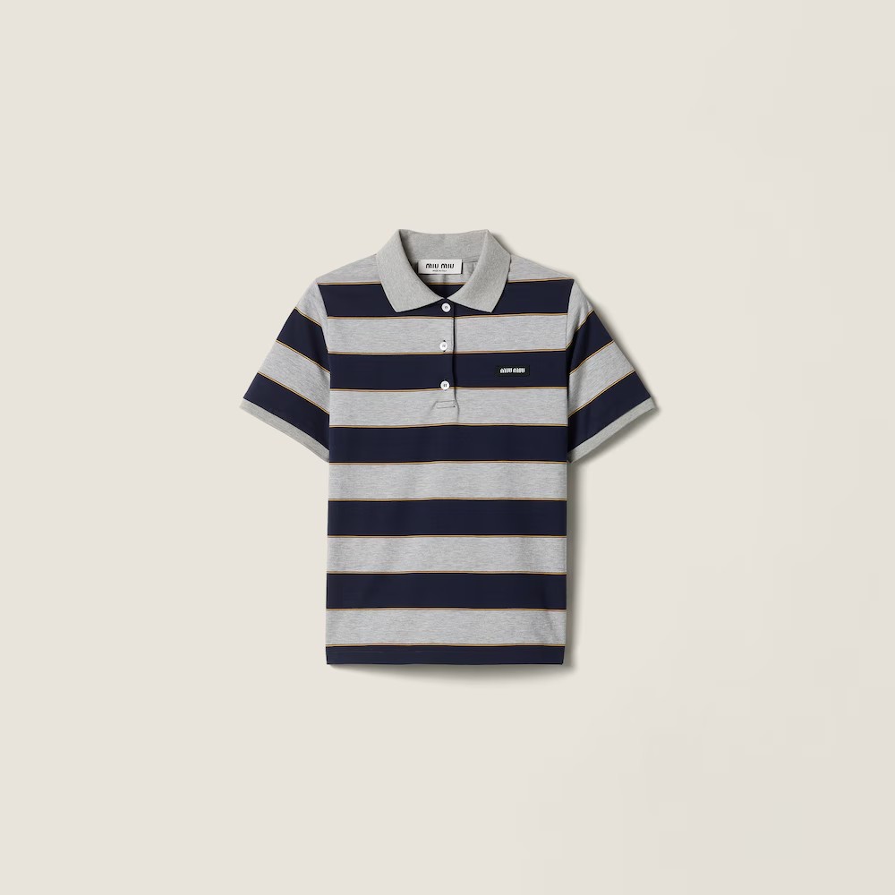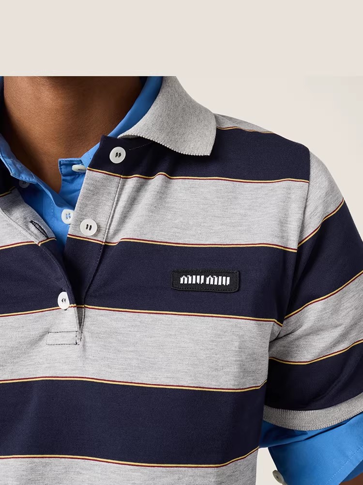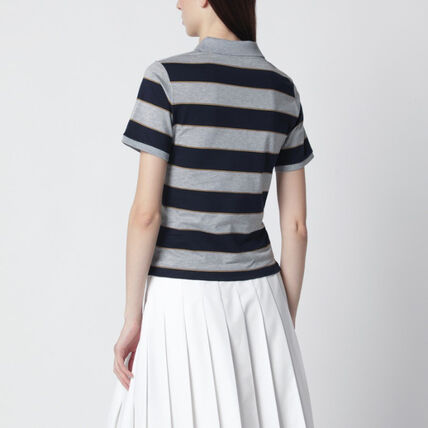 学院条纹polo衫,这个好看呢。胸口小标翻领设计女士poloE032868