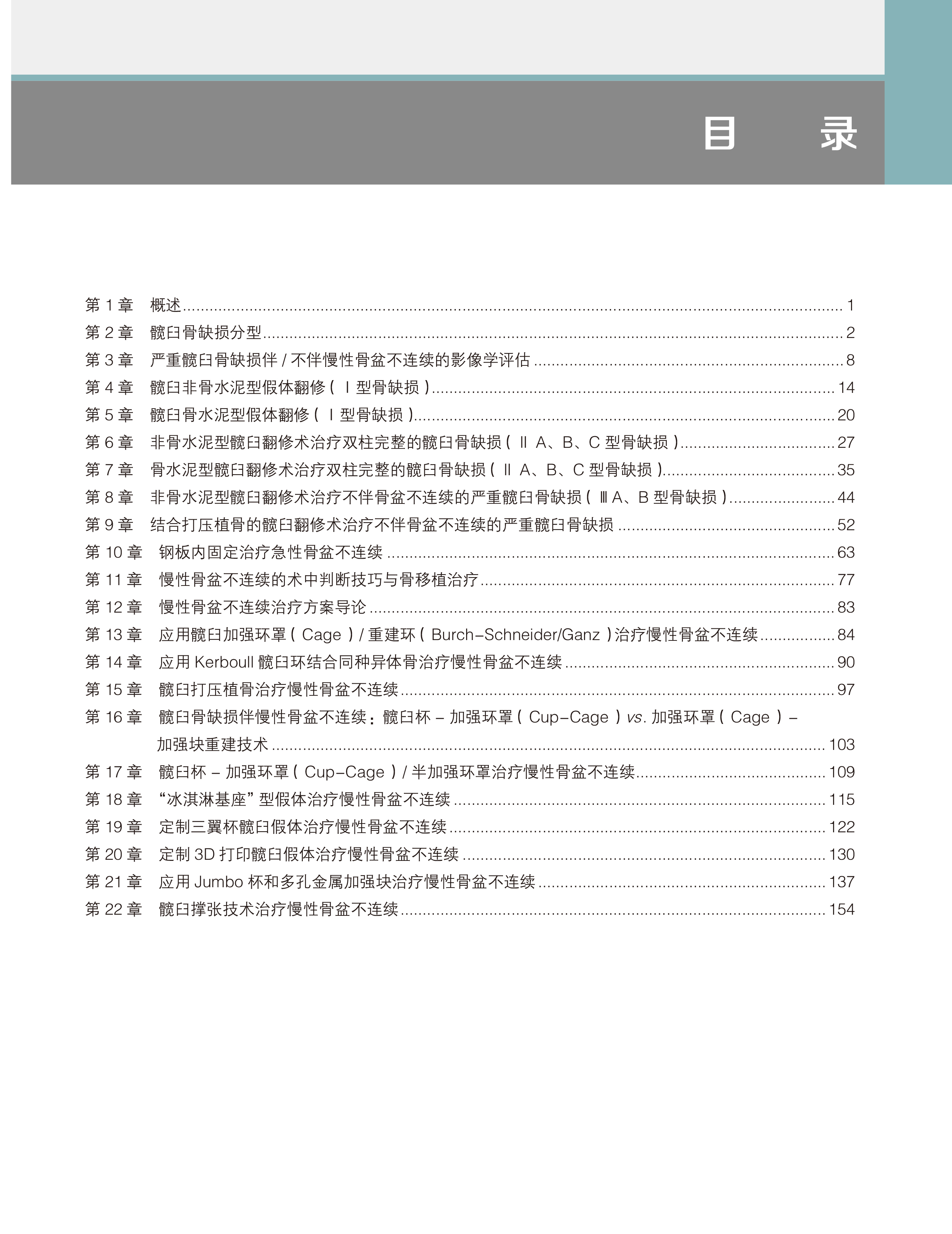 本书提供了迄今为止可能是在髋臼翻修手术中髋臼骨缺损治疗方面最全面的观点。囊括了该领域从骨缺损的分型到髋臼重建的多种方法。重要的是本书重点突出,并且通过独特的细节讨论重建这一主题。对于髋臼骨缺损及其衍生问题均讨论了最佳的重建方法。此外,互为竞争性或可相互替代的重建方法也被广泛纳入,以便读者可以深入了解不仅在北美而且在欧洲和世界其他地方为广大医生所青睐的技术。