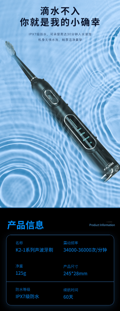 【家用电器】防水充电软毛高频震动磁悬浮超声波电动牙刷成人款