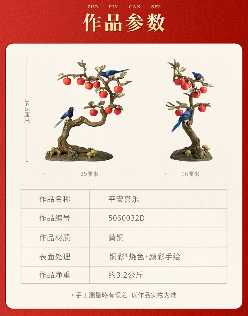 铜师傅 铜摆件《平安喜乐》客厅桌面办公室中式家居新款苹果装饰