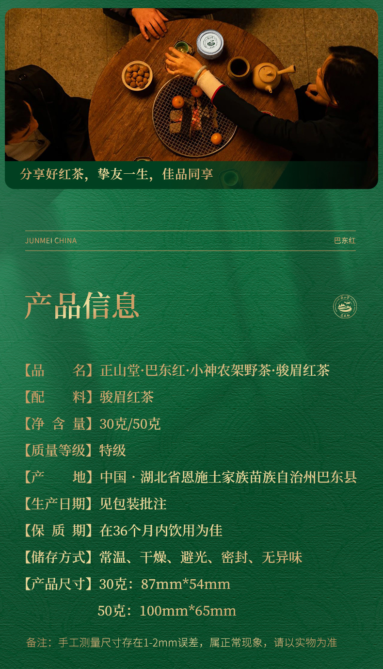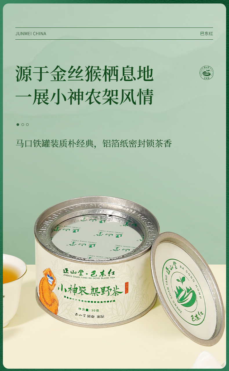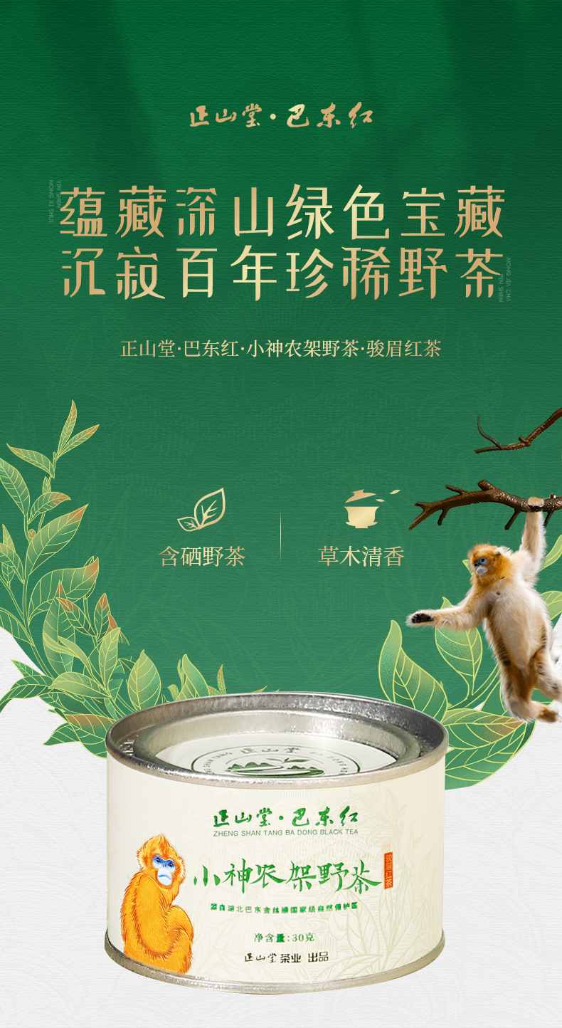 正山堂巴东红 小神农架野茶 骏眉红茶湖北特级红茶罐装30g/50g