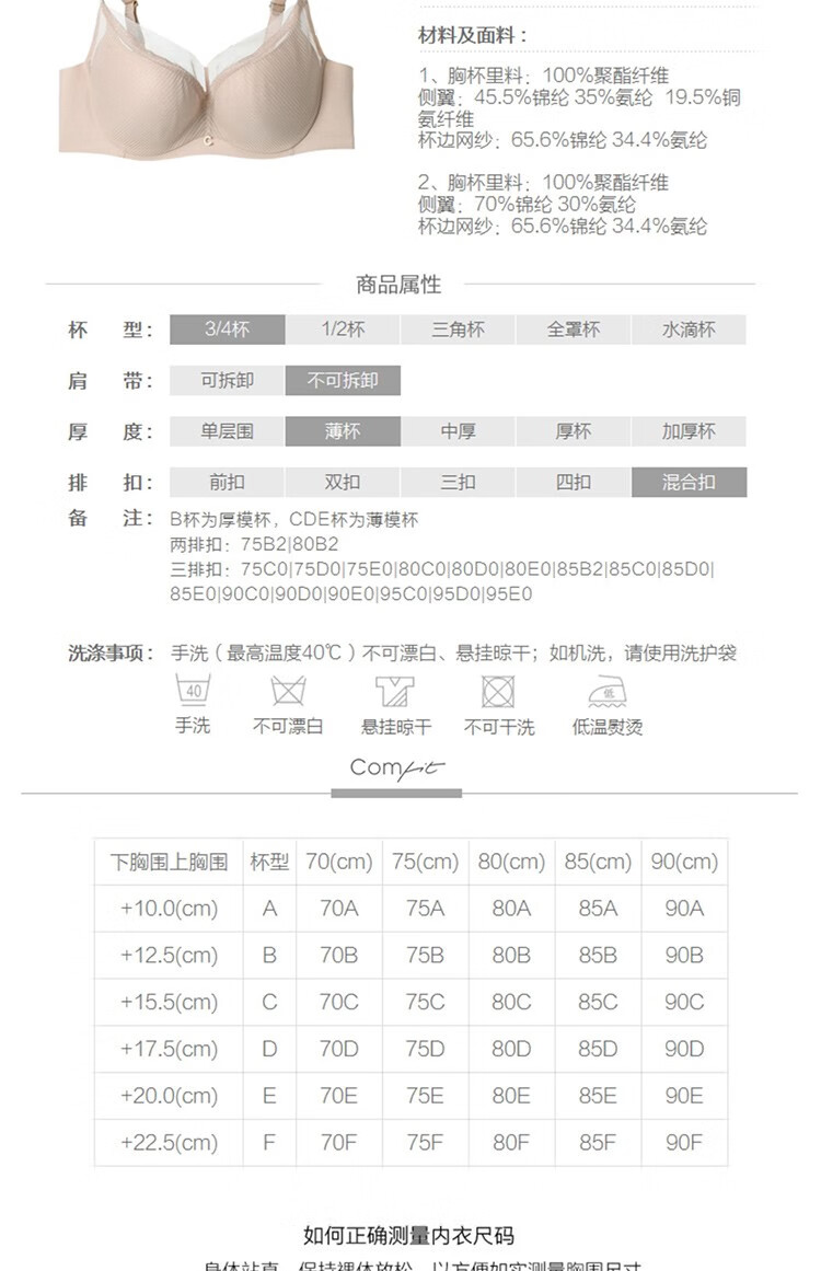 【3F】Comfit大码文胸新款大胸显小聚拢防下垂收副乳薄款内衣女CB00095