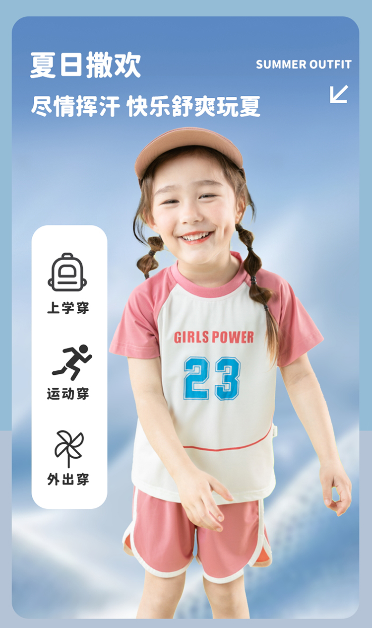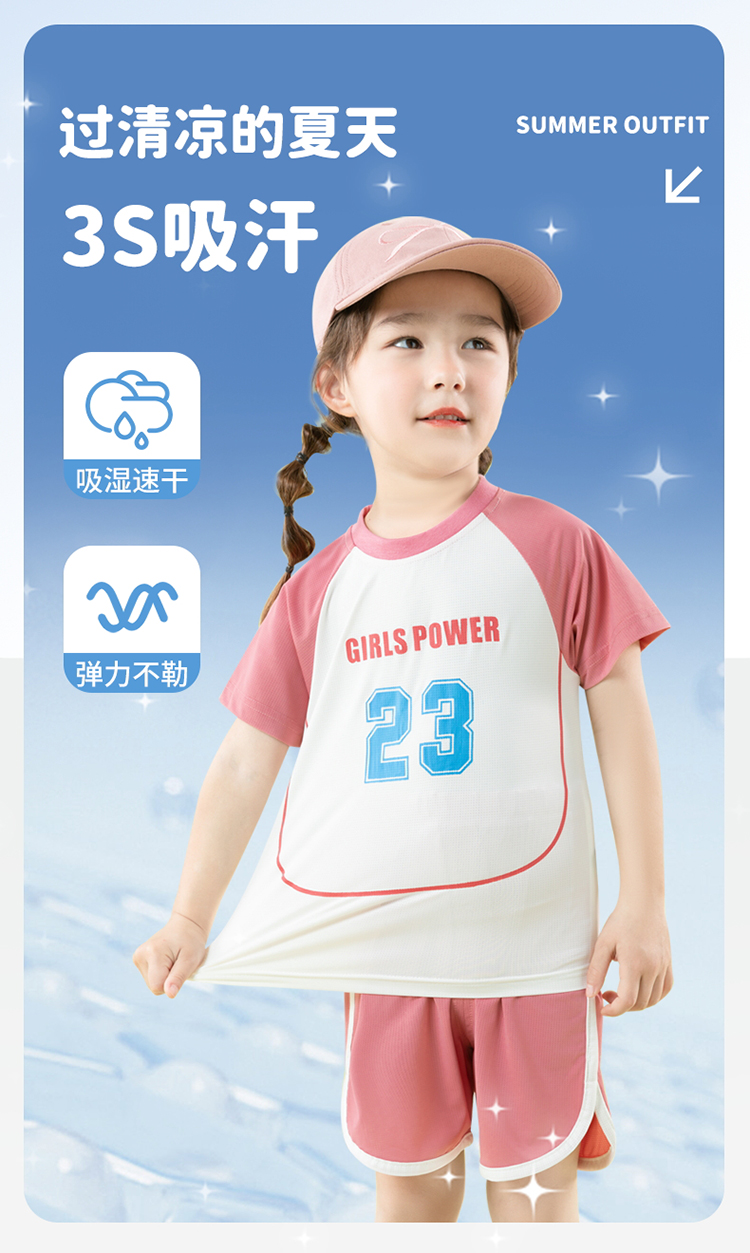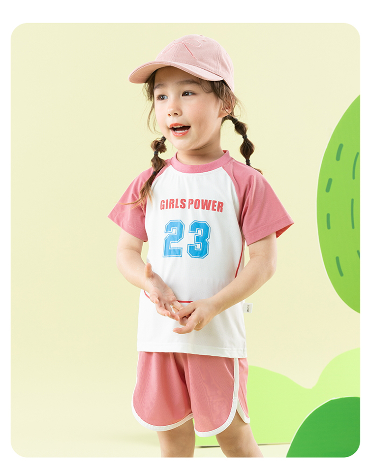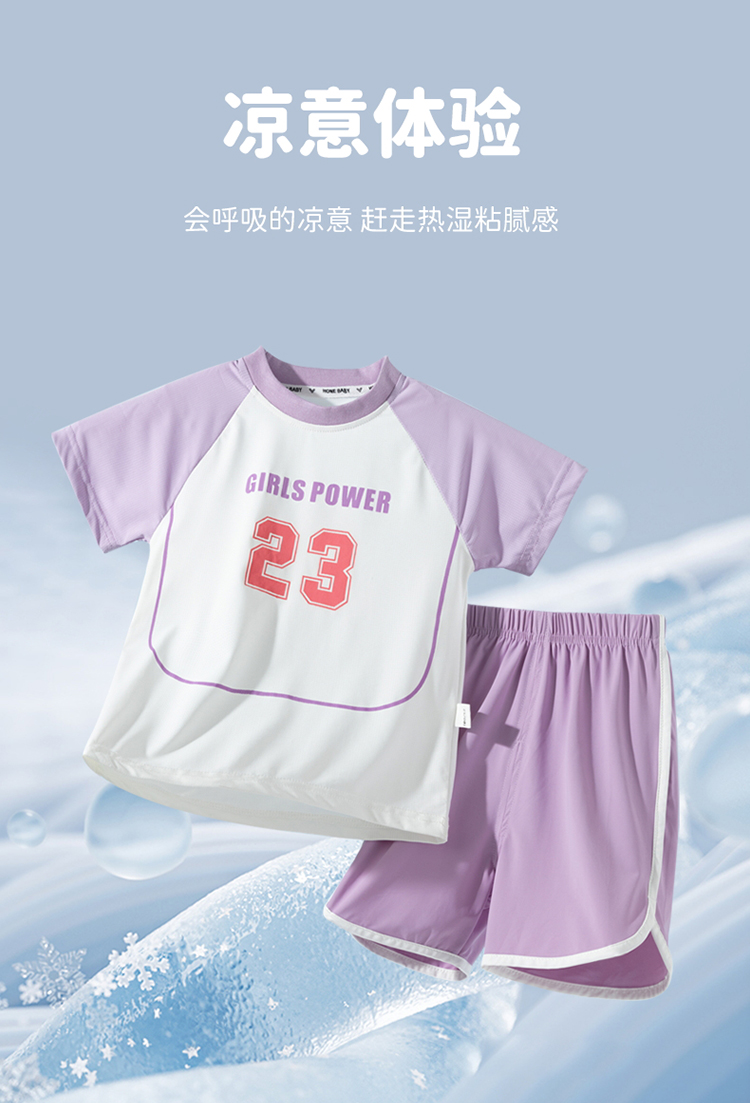 贝贝怡【凉感运动风套装】25夏季新款女童冰感短袖T恤+宽松透气短裤套装ZB2ET028