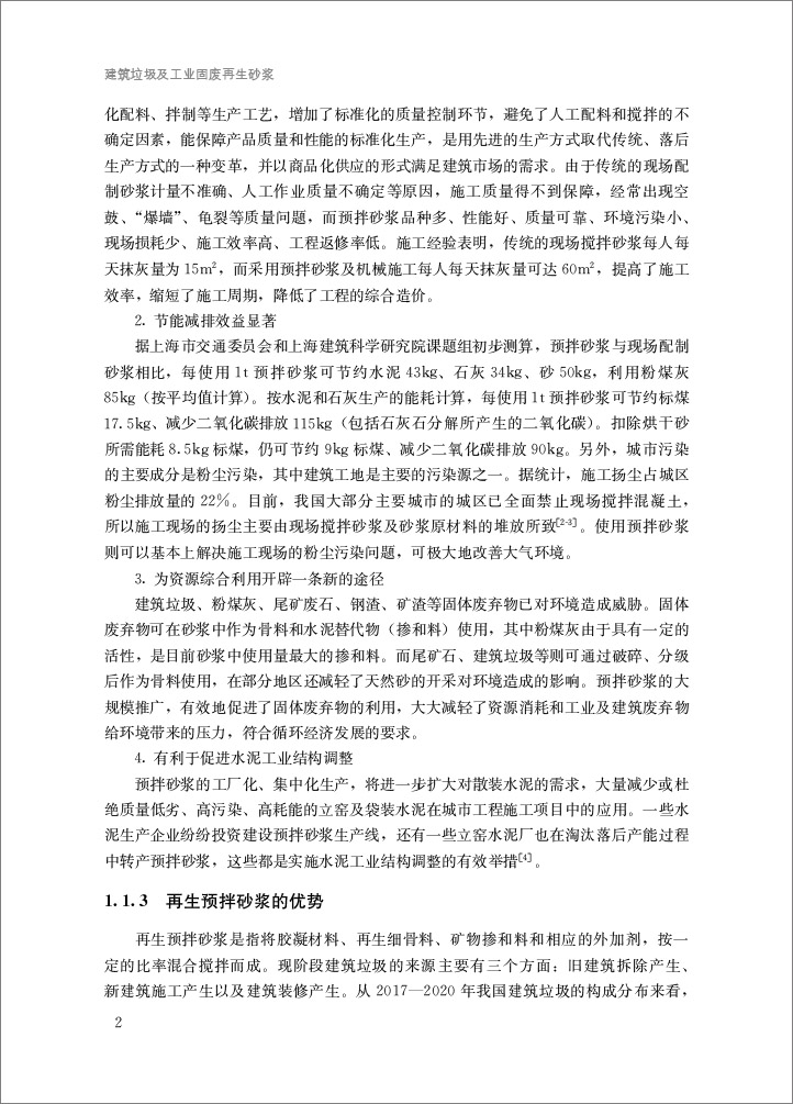 基于此,本书特组织了多位有丰富经验的建筑垃圾和工业固废资源化利用相关科研工作者和企业管理者将积累多年的宝贵经验与建筑垃圾行业积累的素材相结合,编写了《建筑垃圾及工业固废再生砂浆》一书。本书主要介绍了利用建筑垃圾和工业固体废弃物制备砂浆,从再生砂浆原材料、配合比设计、生产设备、性能检测与质量控制、再生砂浆性能的影响因素、再生砂浆施工等多个维度展开研究,以期能解决相关人员在实际生产、使用过程中遇到的相关问题。在此,对向本书提供帮助的企业及技术人员一并表示感谢。