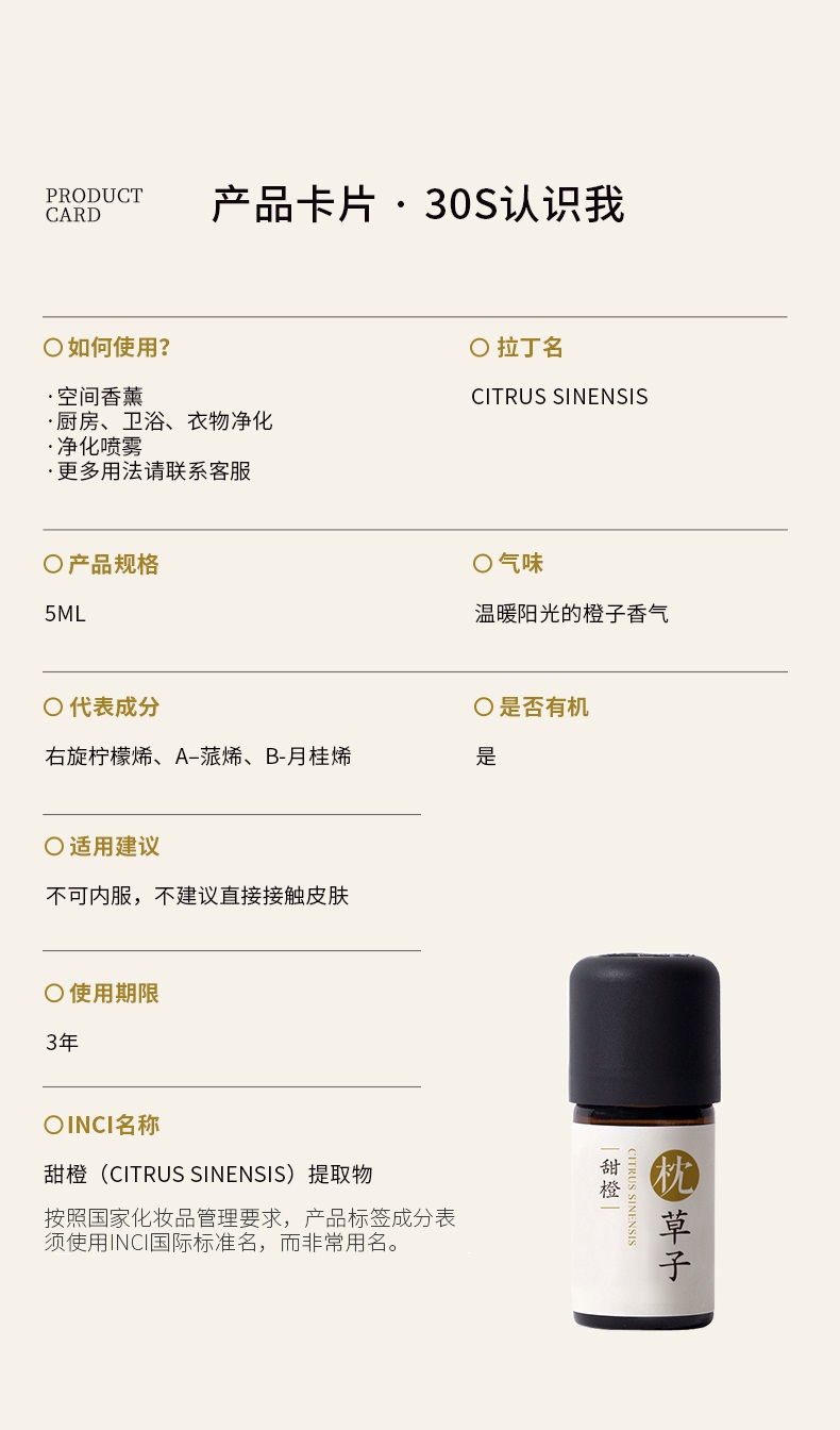 【枕草子】意大利【甜橙】 欧盟you机认证 甜橙 清新像刚切开的橙子 家居常备 老人婴童温和安全 意大利枕草子柑橘家族