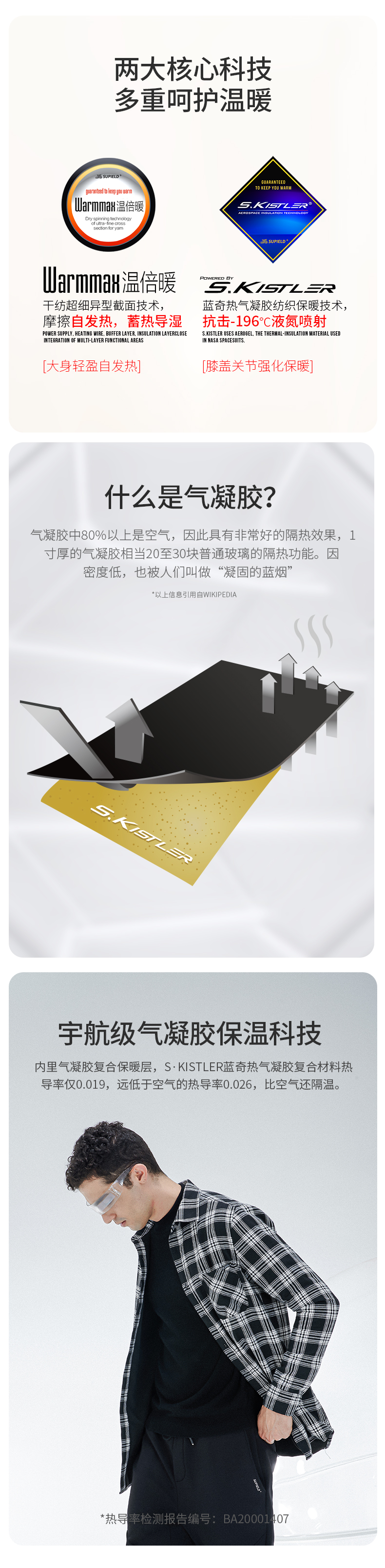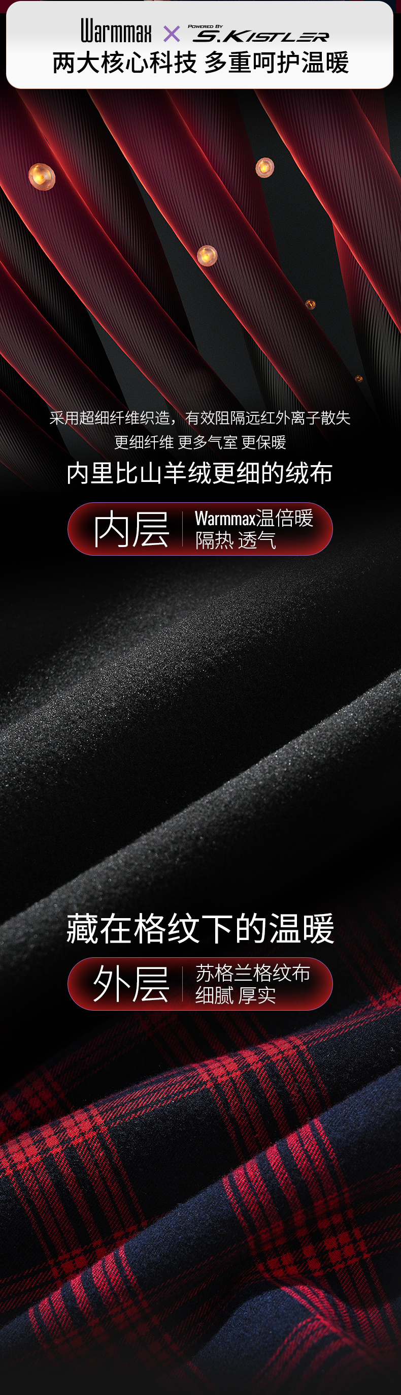 Supield素湃气凝胶加绒衬衫 男女同款 冬季防寒保暖格子衬衣外套潮A371 商品图8