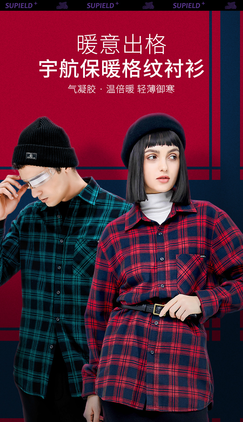 Supield素湃气凝胶加绒衬衫 男女同款 冬季防寒保暖格子衬衣外套潮A371