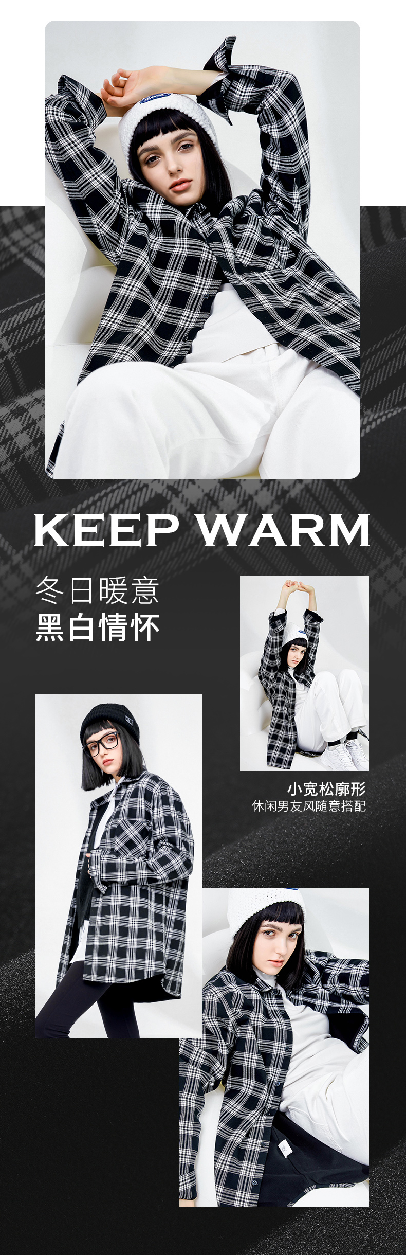 Supield素湃气凝胶加绒衬衫 男女同款 冬季防寒保暖格子衬衣外套潮A371 商品图6