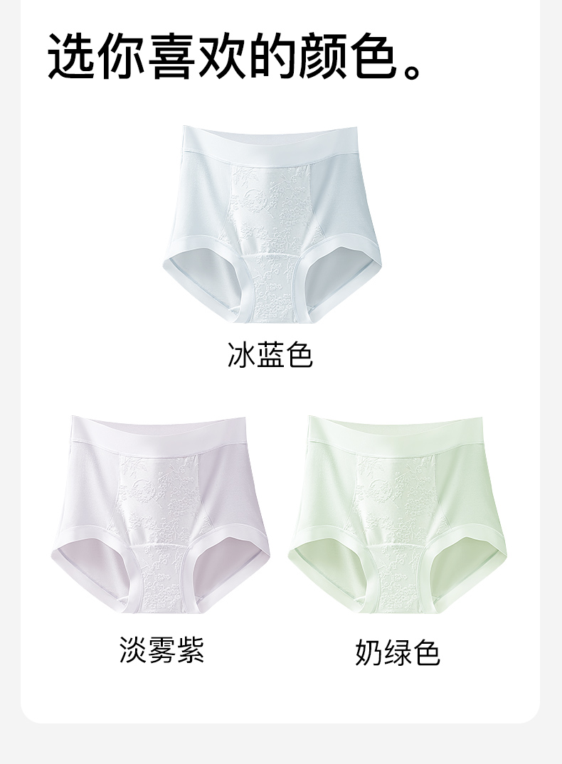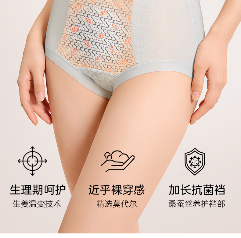 N2- 【生姜暖宫 桑蚕丝底裆】【3条】润微高腰收腹内裤女新款加长裆10A抑菌生姜暖宫国风女士女三角裤 雅柔沁肤