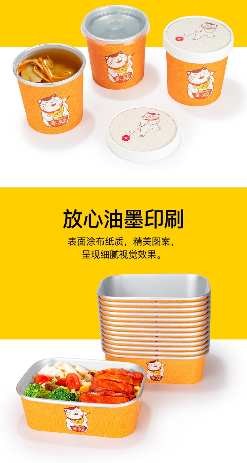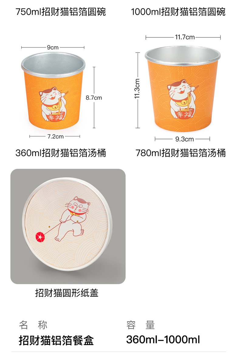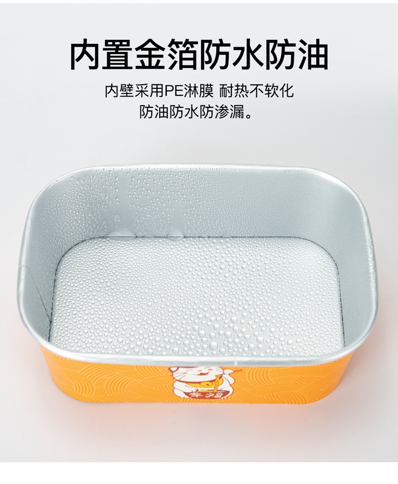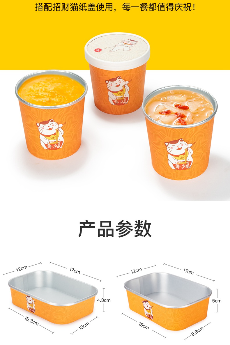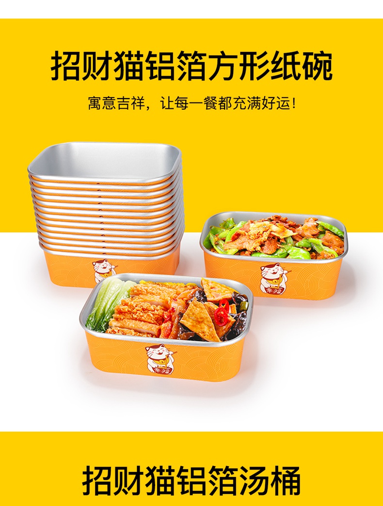 喇叭花招财猫一次性铝箔纸碗打包碗方盒带盖汤碗外卖打包盒带盖