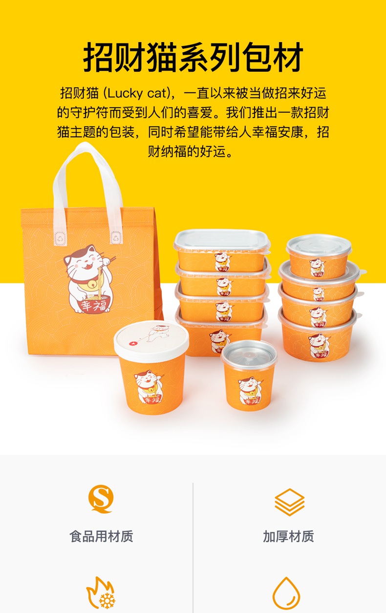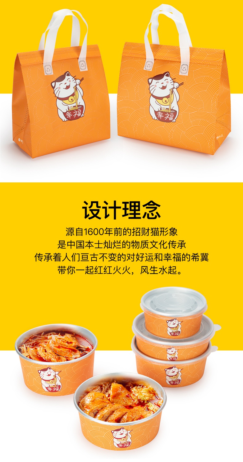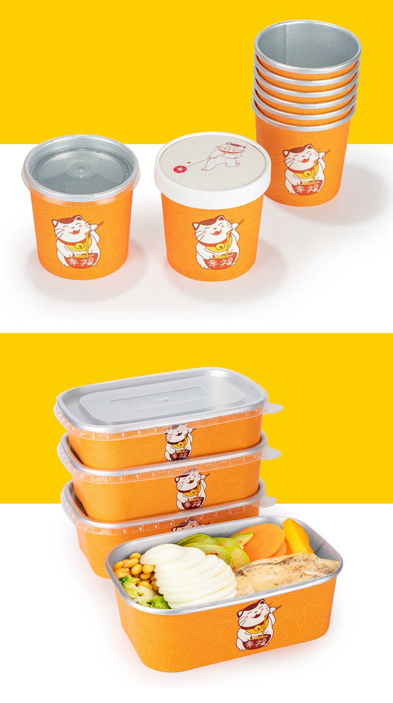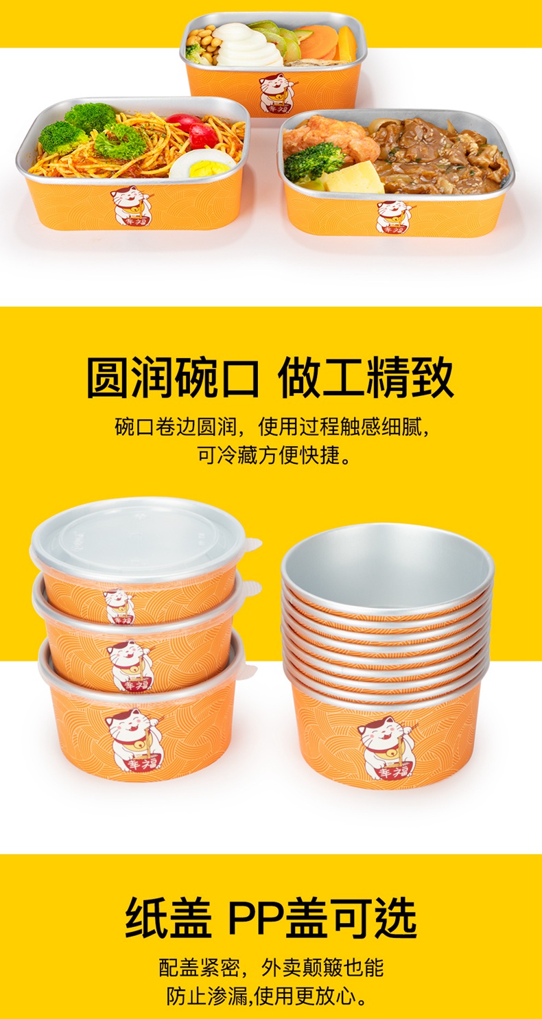 喇叭花招财猫一次性铝箔纸碗打包碗方盒带盖汤碗外卖打包盒带盖