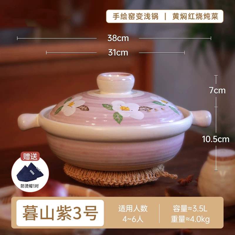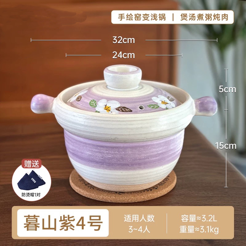 这个暮山紫4号比较高,内里进深较大,可容纳较多材料,用于煲汤煮粥炖肉都很好。