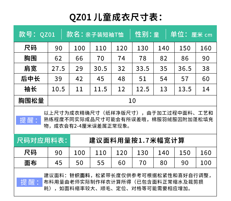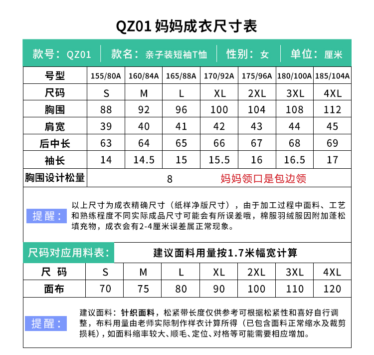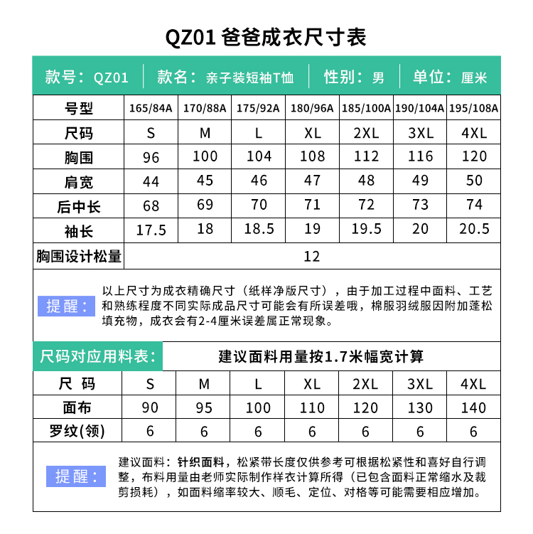 裁缝学苑QZ01亲子装夏装短袖T恤1:1实物服装纸样剪裁图纸牛皮纸样