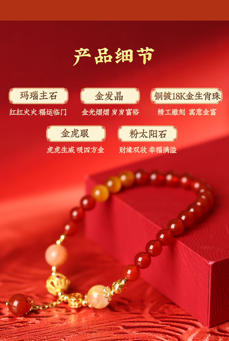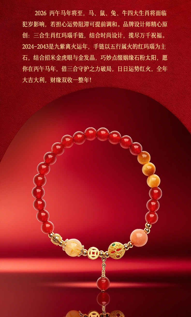 【祈愿吉品】马年三合生肖红玛瑙手链
