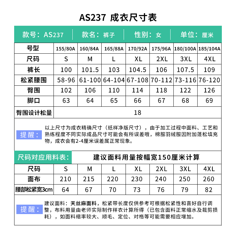 裁缝学苑AS237山本裤冰丝阔腿裤纸样女装夏季高腰垂感直筒裤样板