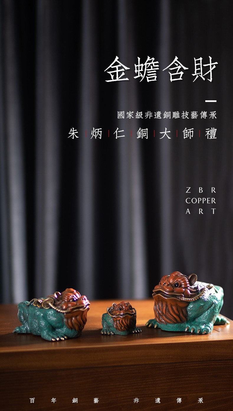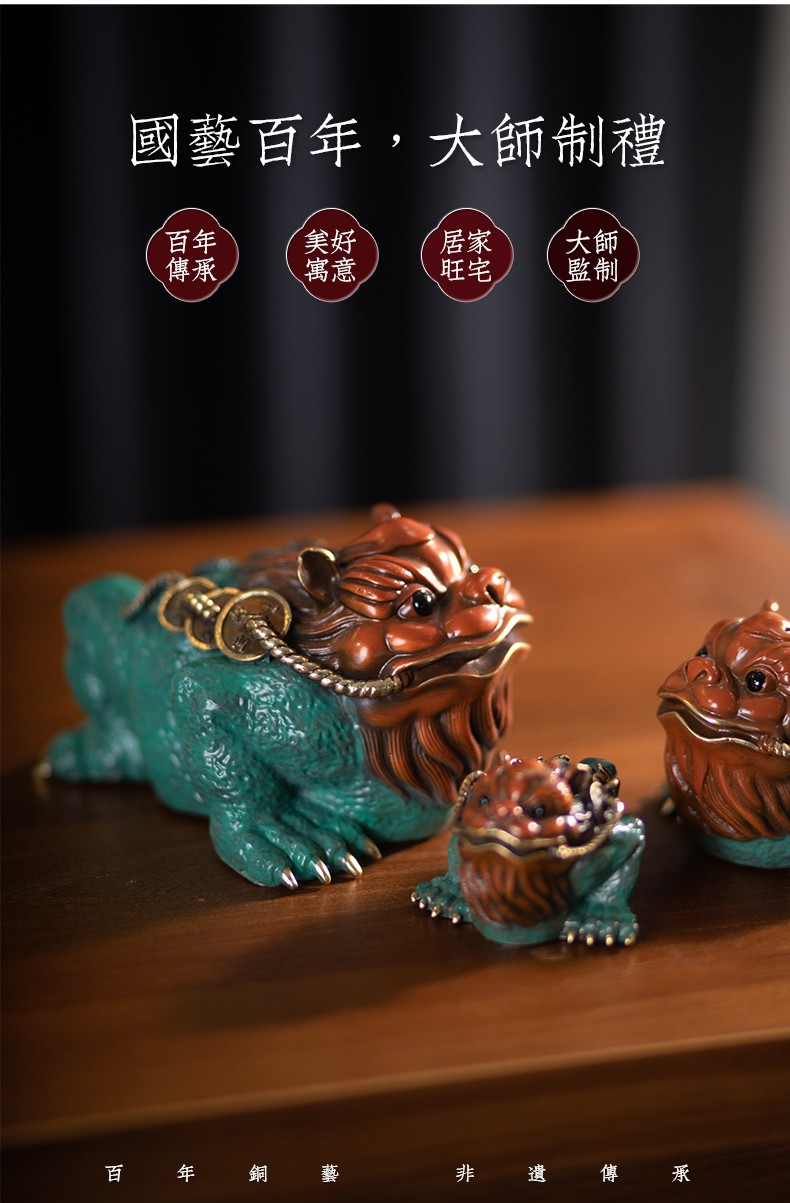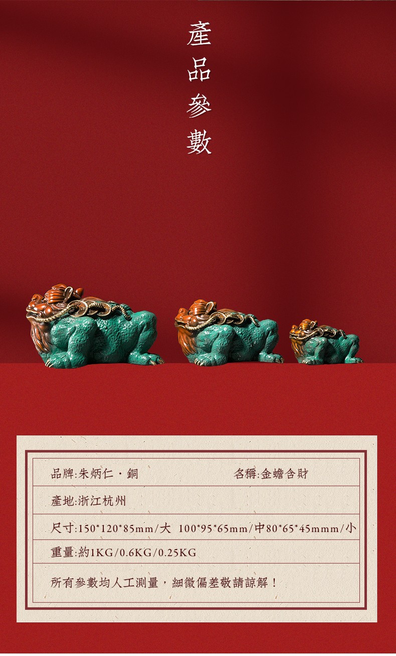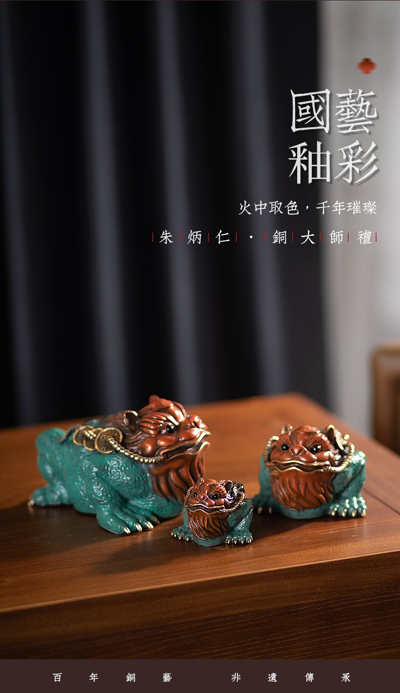 【6F】朱炳仁 铜 全铜摆件《金蟾含财》 铜雕家居工艺品 装饰品 客厅摆件礼 小(80*65*45mm)