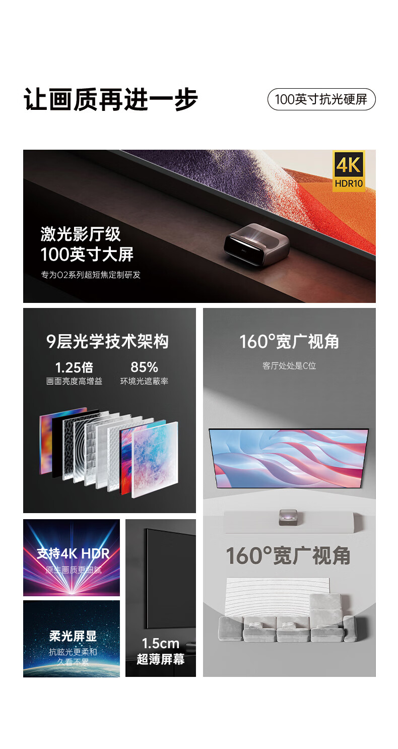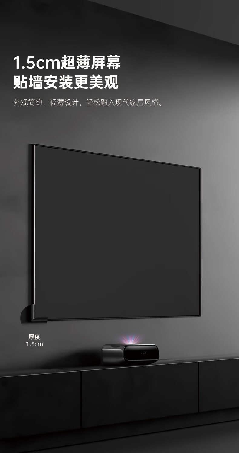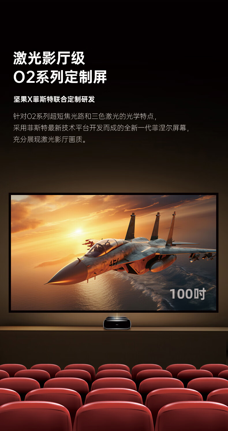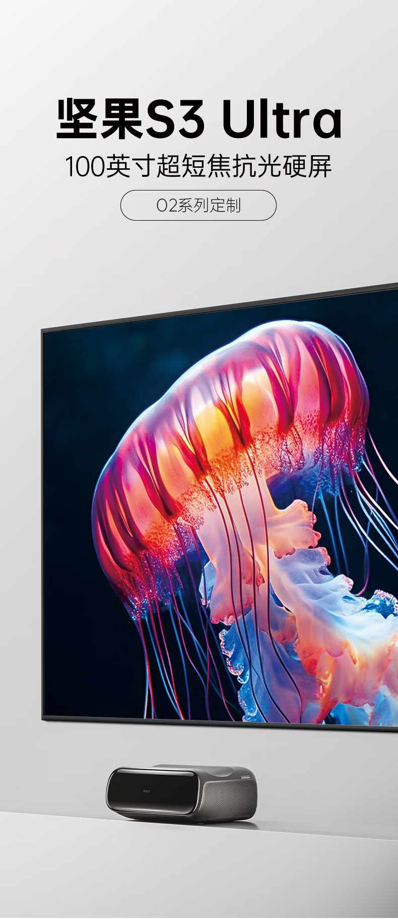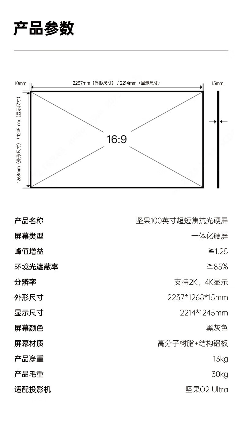 坚果投影(JMGO)100英寸超短焦幕布 投影仪幕布 菲涅尔屏O2 Ultra 160度宽广视角 适配多种投影仪 黑灰色【鲜知30.0】
