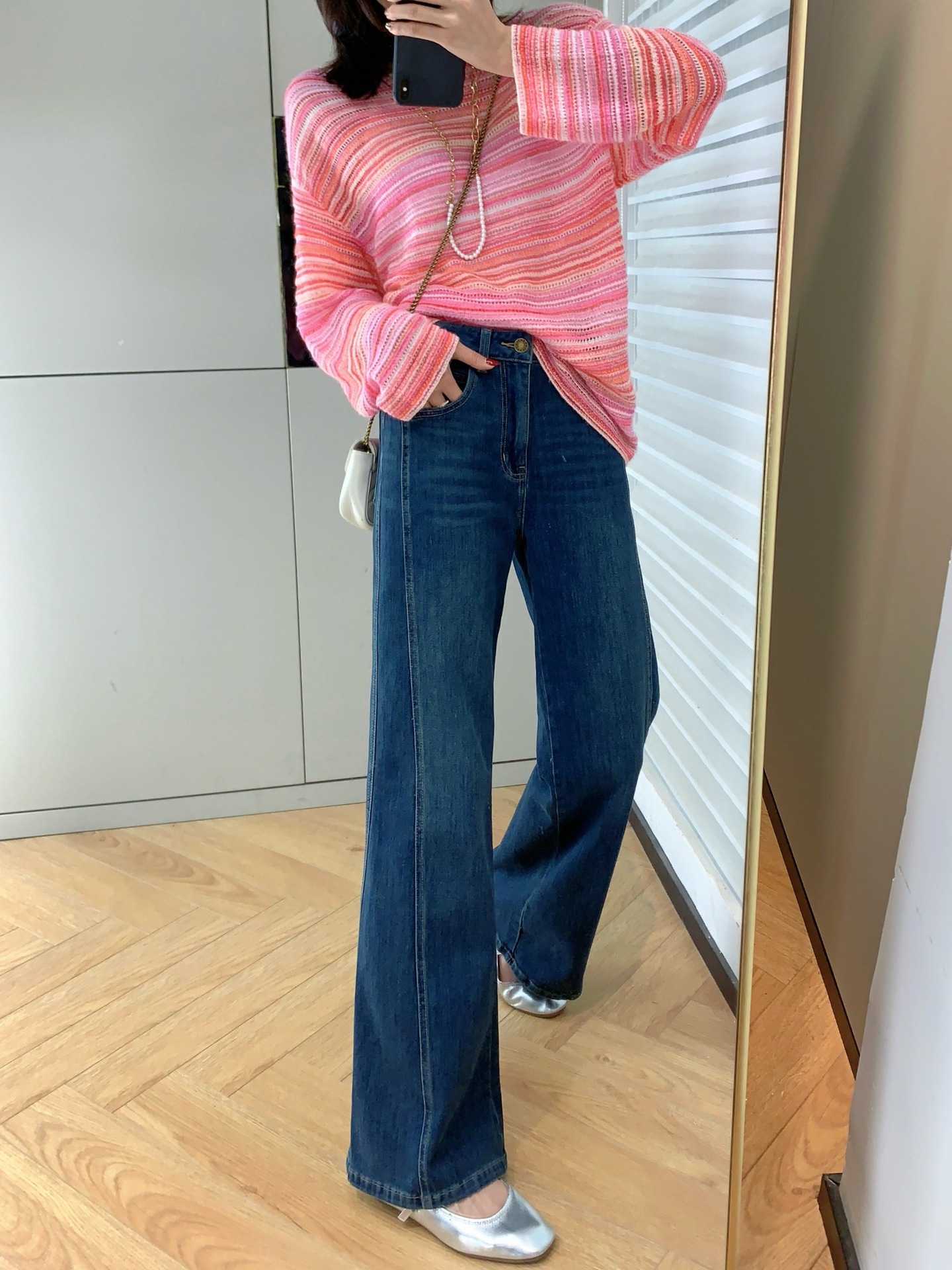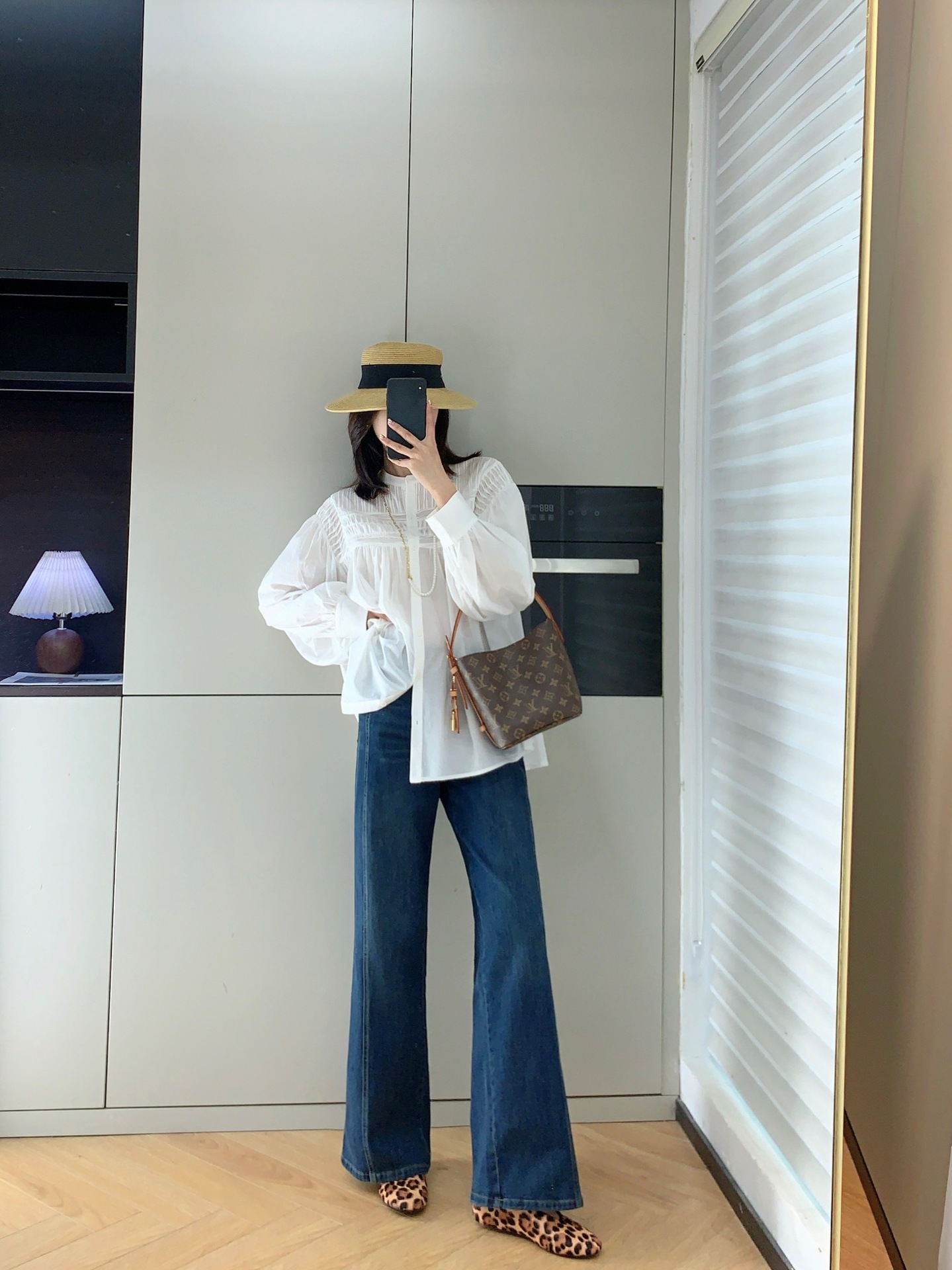 采用棉混纺面料,柔韧性+亲肤性好整件微阔微喇裤型,腿粗胯宽、梨型身材都能包容上身舒适好穿,不厚重,自然亲肤