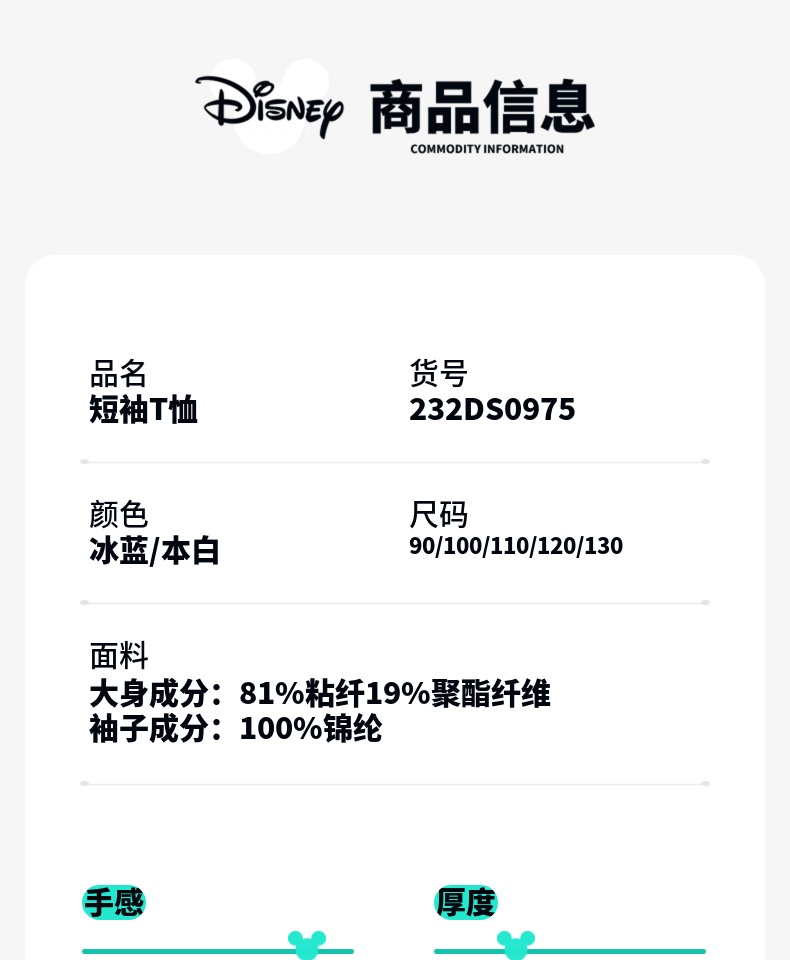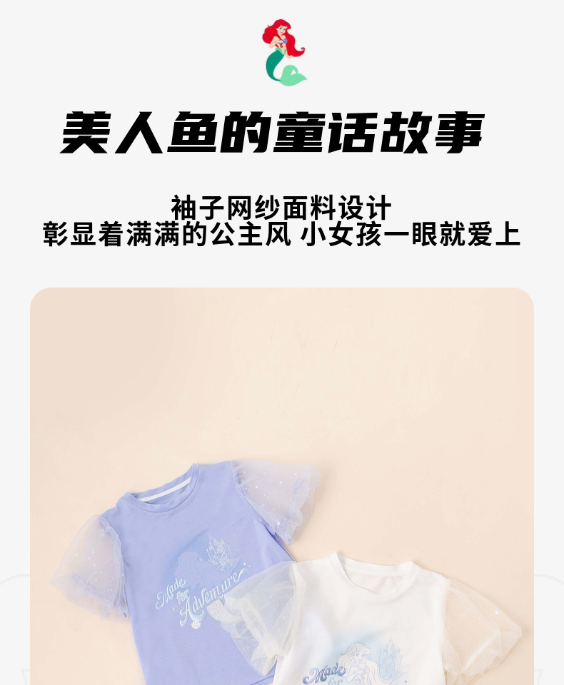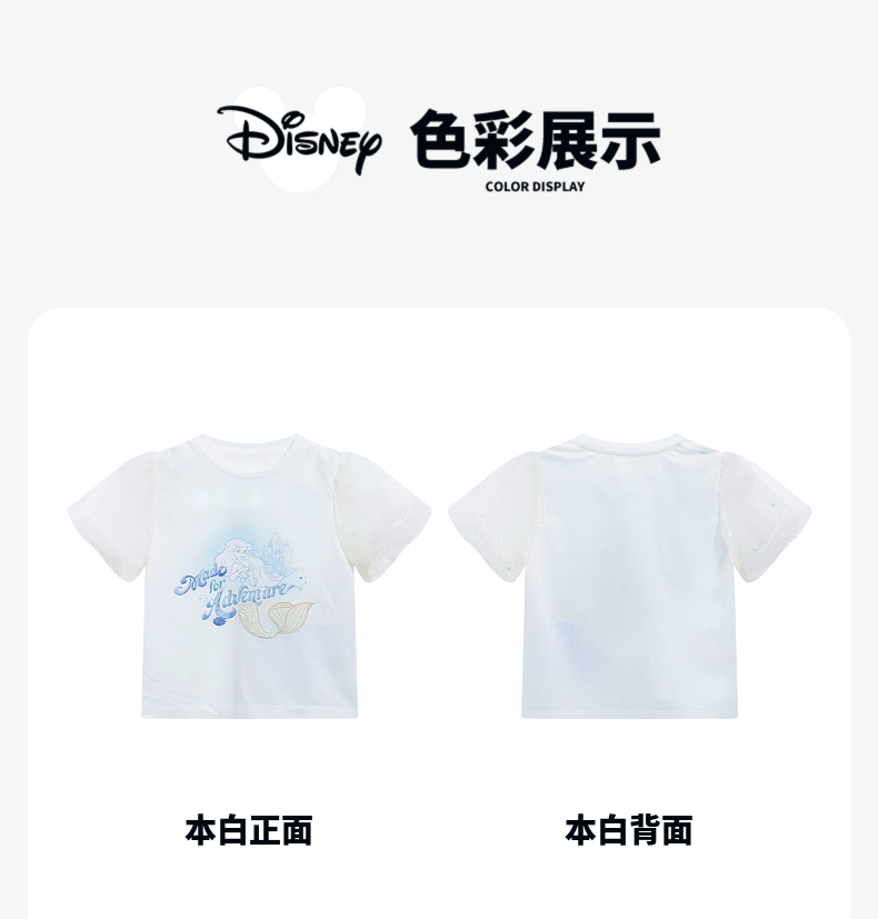 【商城同款】迪士尼童装女童T恤可爱圆领短袖T恤232DS0975