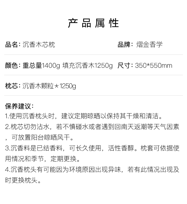沉香木矜贵,市场往往以克计算,我们这款沉香枕,足足填充了3斤的沉香木碎做枕芯,光听也是足够贵气。