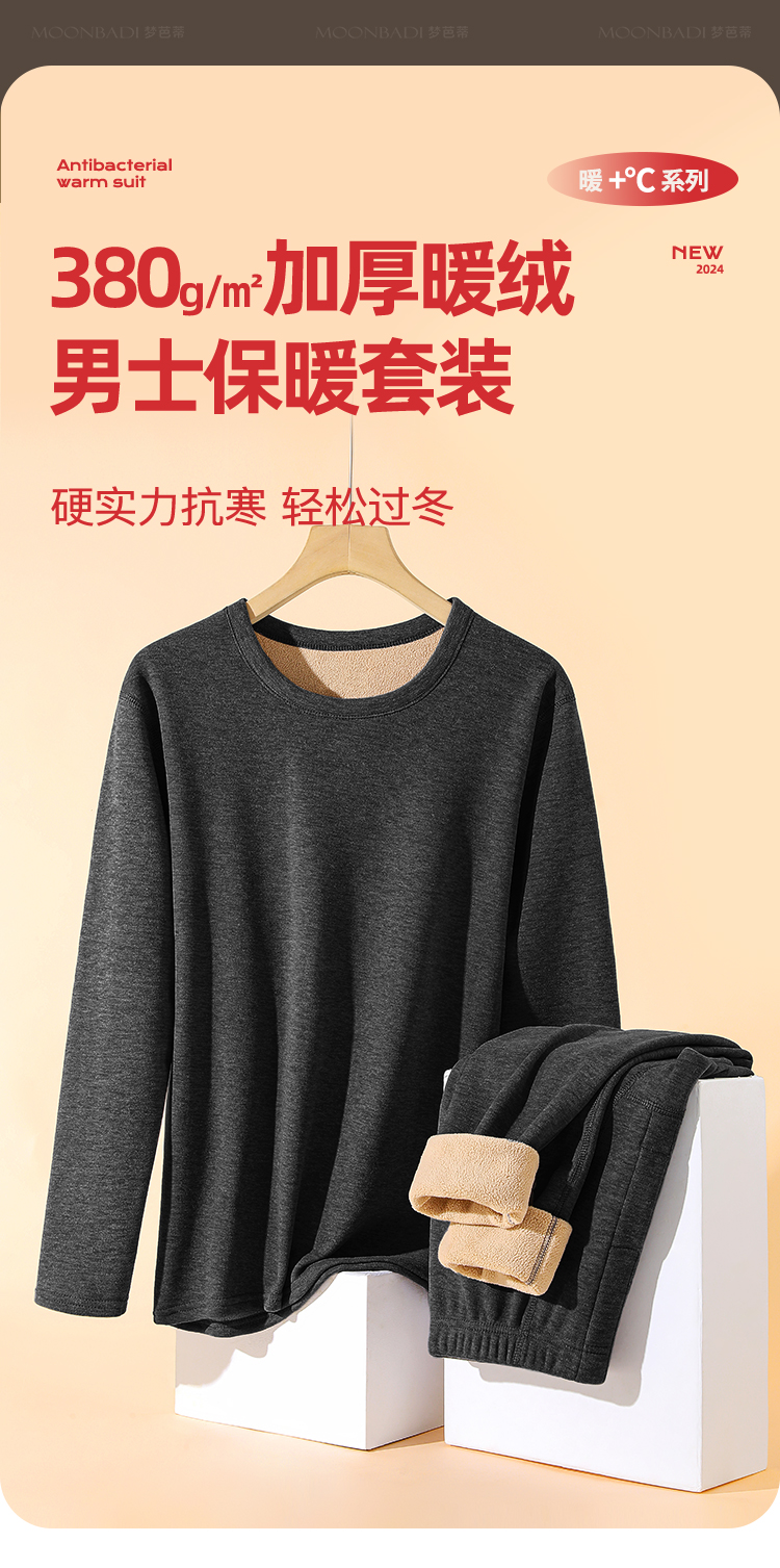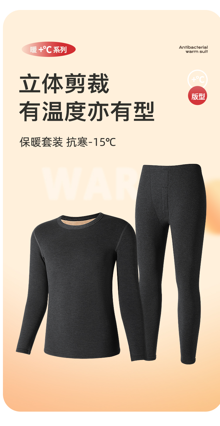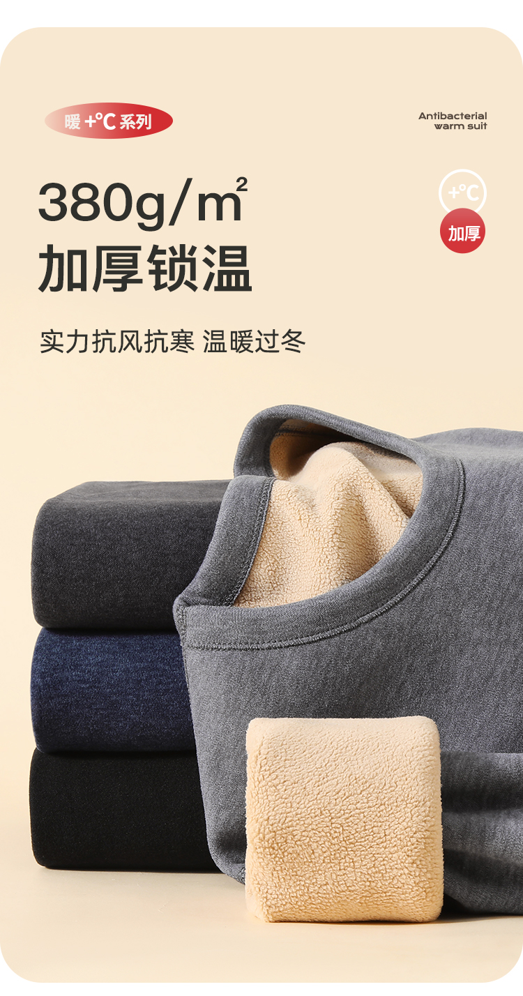 【双面暖绒】380g加厚男士保暖套装聚热锁温无痕圆领秋衣秋裤男士奥利保暖套装