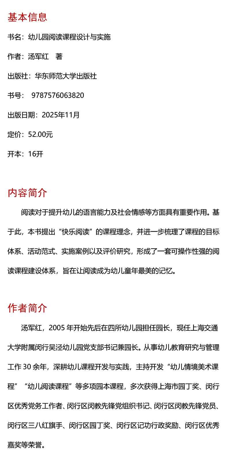 幼儿园阅读课程设计与实施 特色课程建设丛书 汤军红