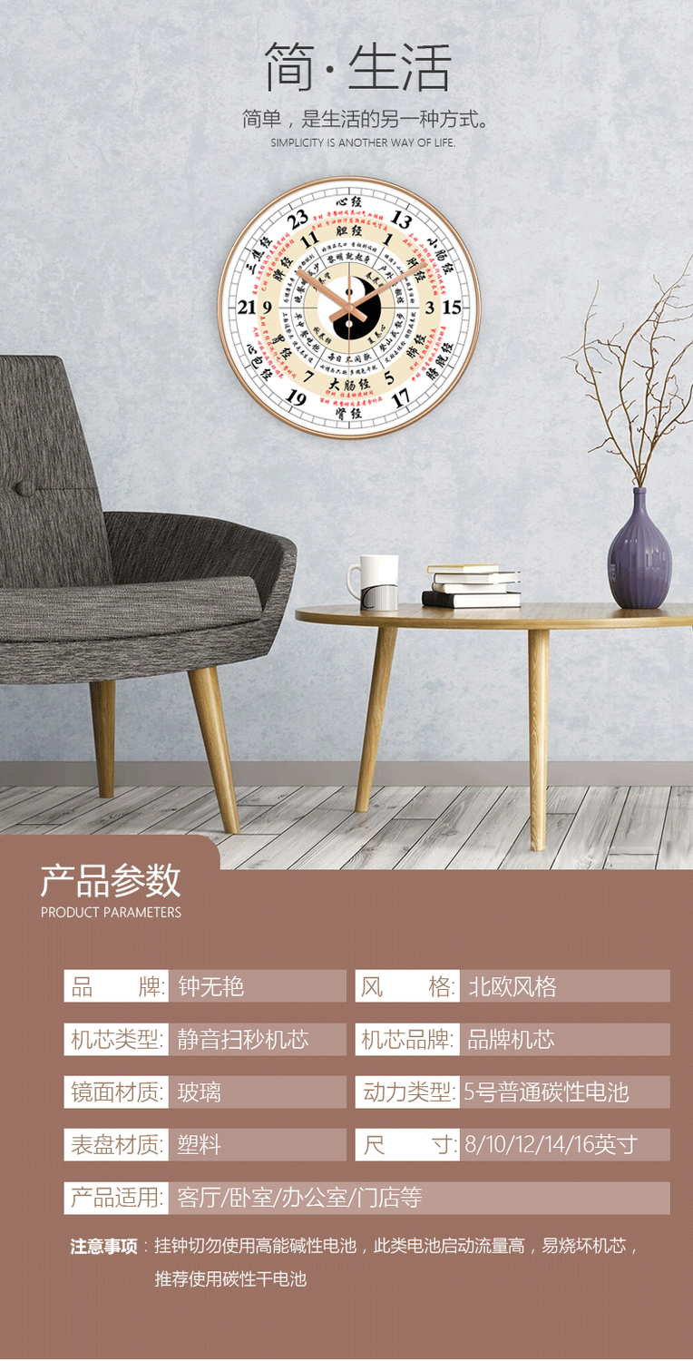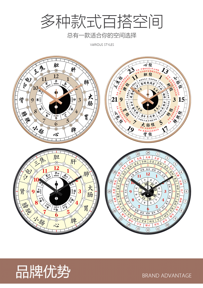 子午流注钟表中医养生家用时钟十二时辰静音客厅24小时美容院挂钟