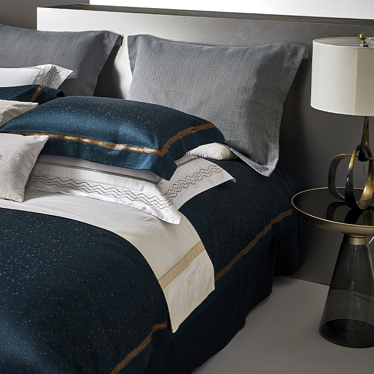 💫以劳斯莱斯星空顶为灵感蓝图,甄选140支超长绒匹马棉为底,融入24K金丝与铂银丝线,在深邃夜幕蓝中织就流动星河~