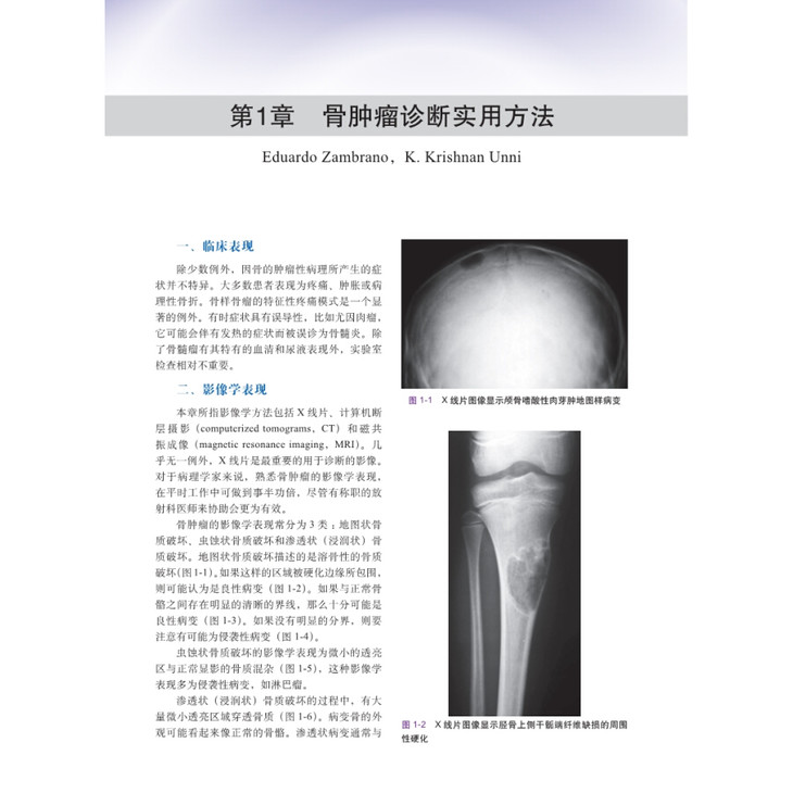 全书分上、下两卷,从流行病学、临床症状、影像学、病理学、鉴别诊断等方面对每种骨肿瘤和瘤样病变进行了详细的描述,特别是采用大量的影像学资料和病理学图片分别对疾病的影像学特征和鉴别诊断进行论述。本书为上卷,内容涵盖概述、成骨肿瘤、成软骨性肿瘤、巨细胞瘤、圆细胞瘤、纤维瘤、来源不明的肿瘤和血管肿瘤等。
