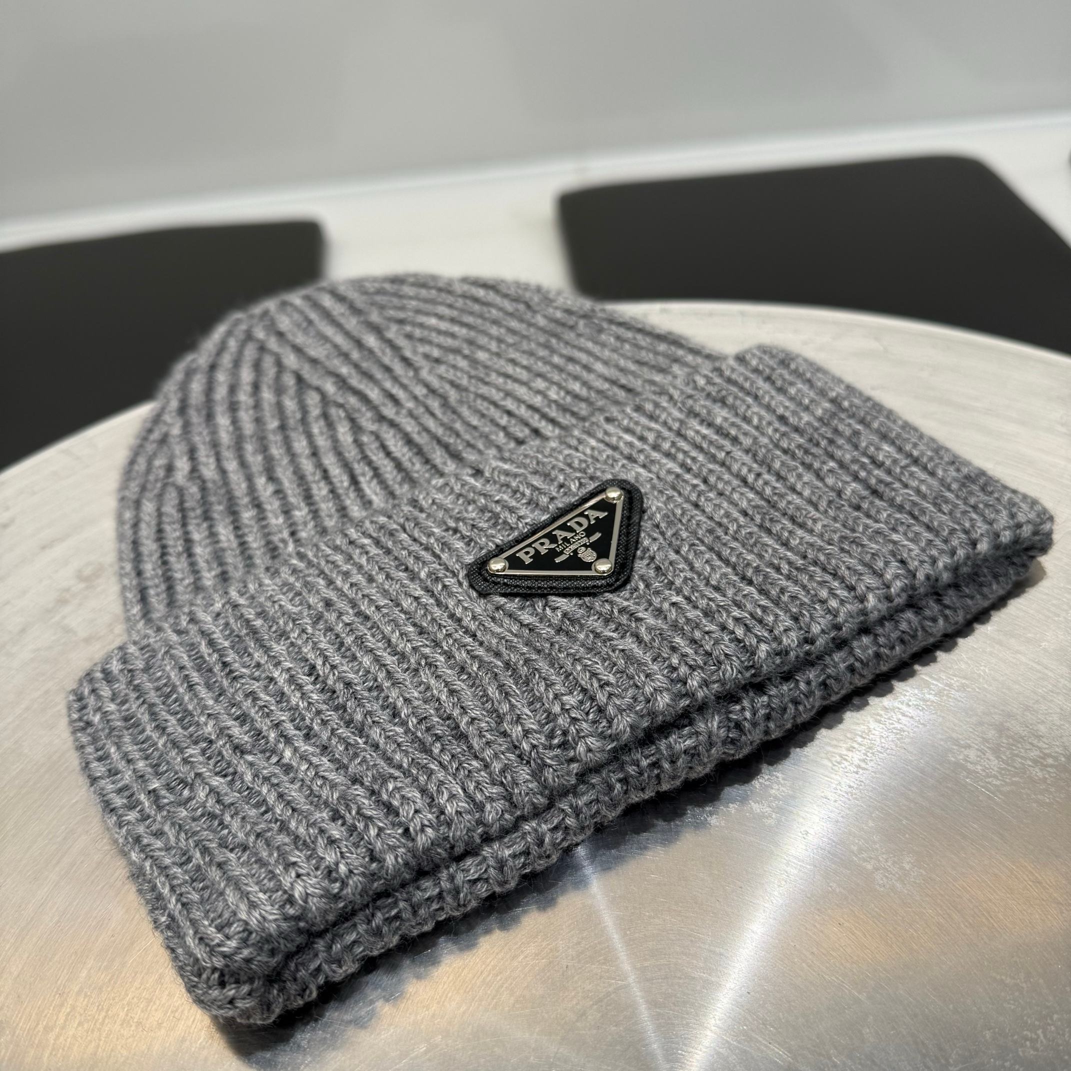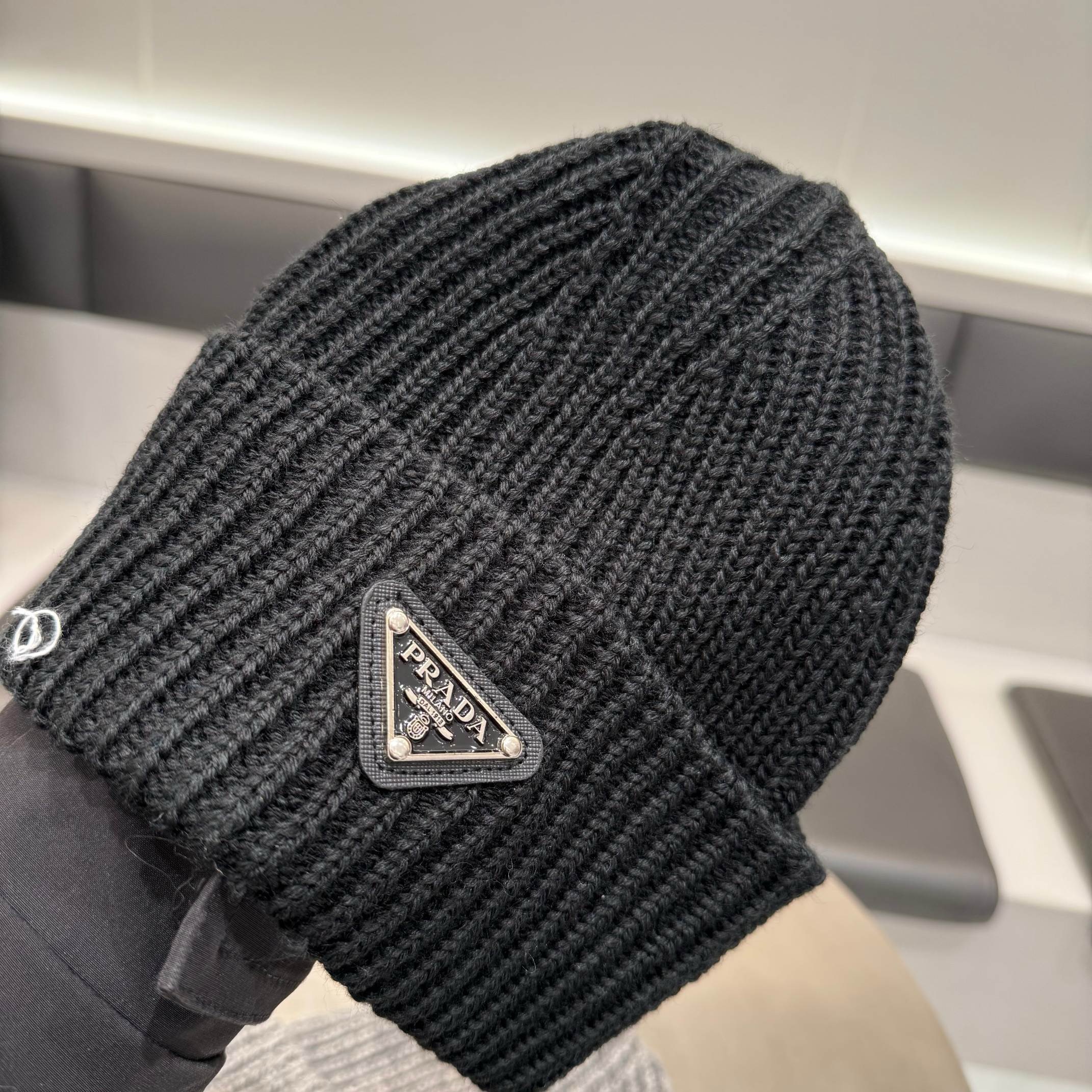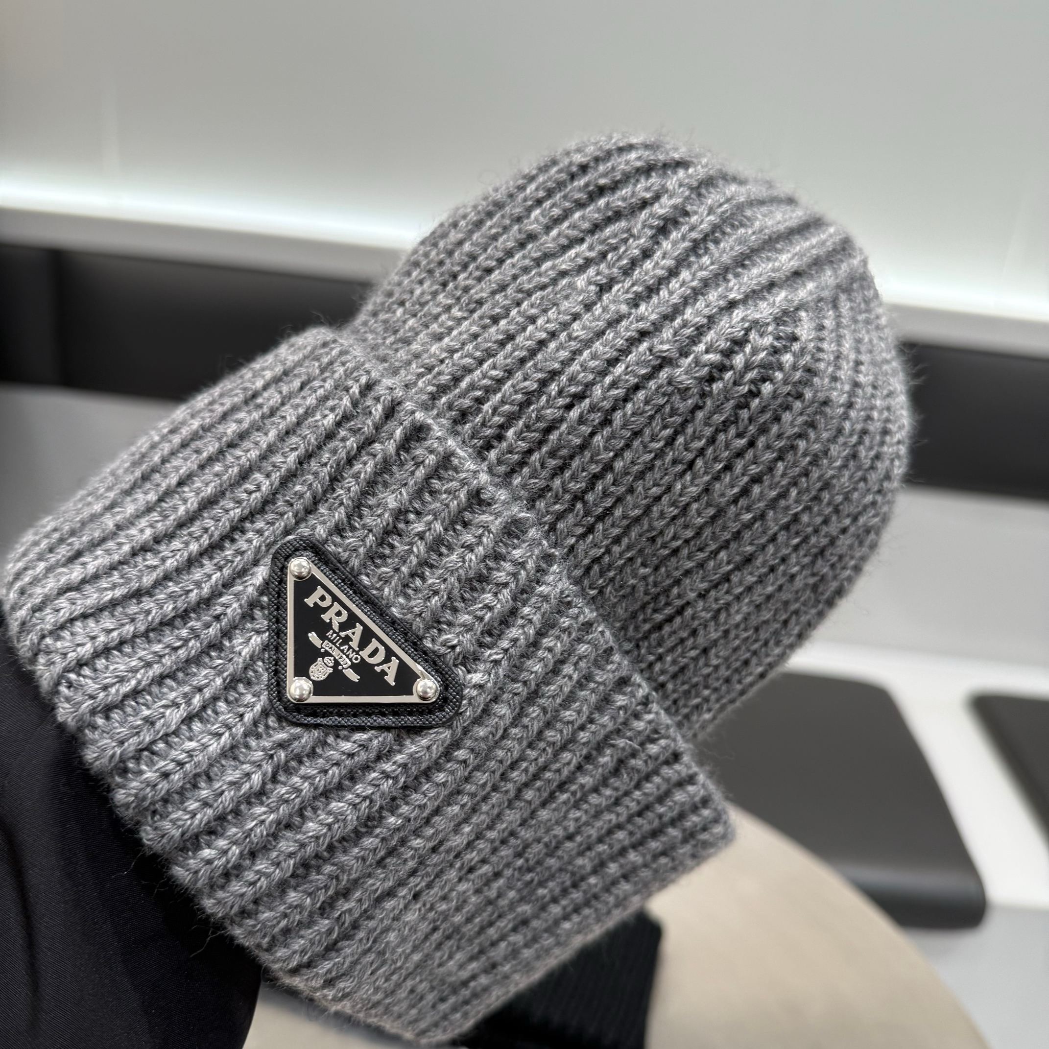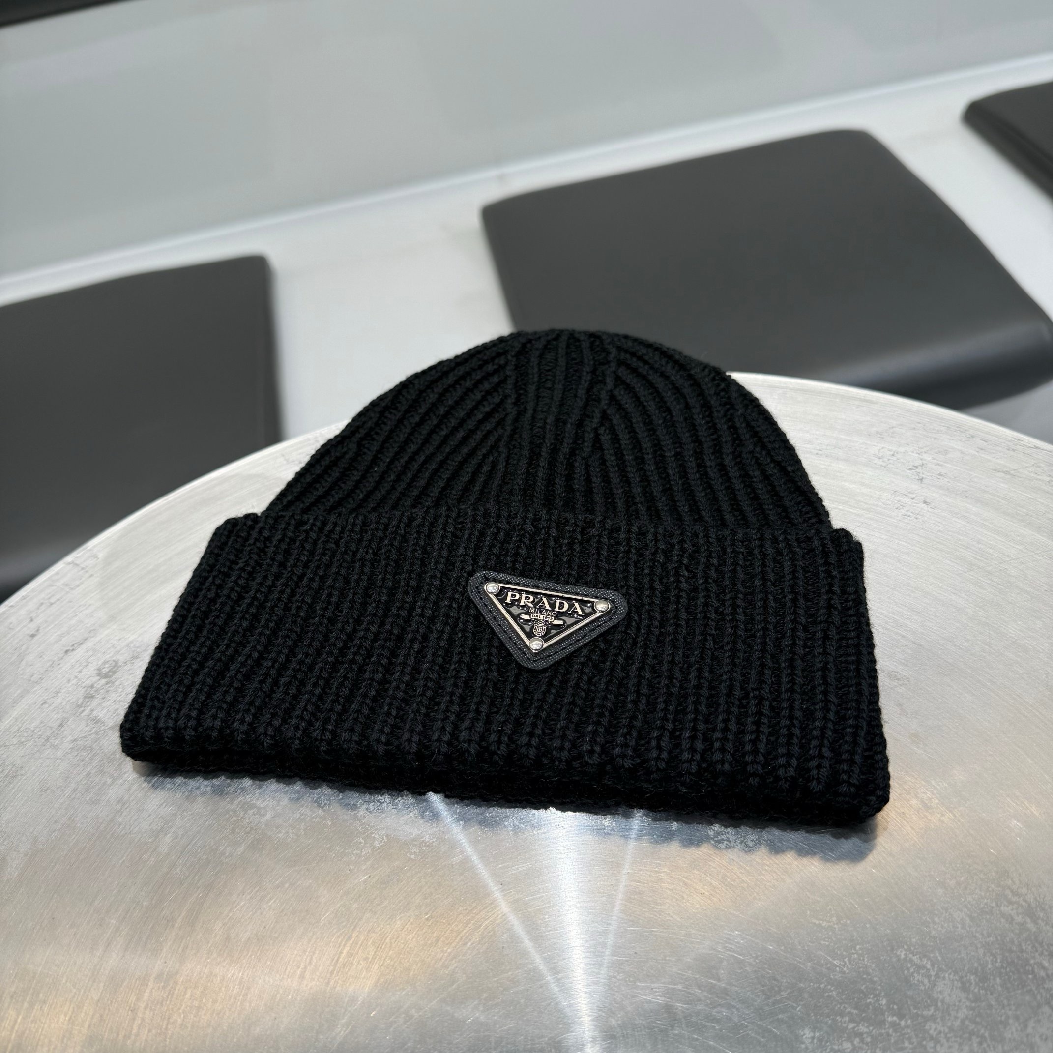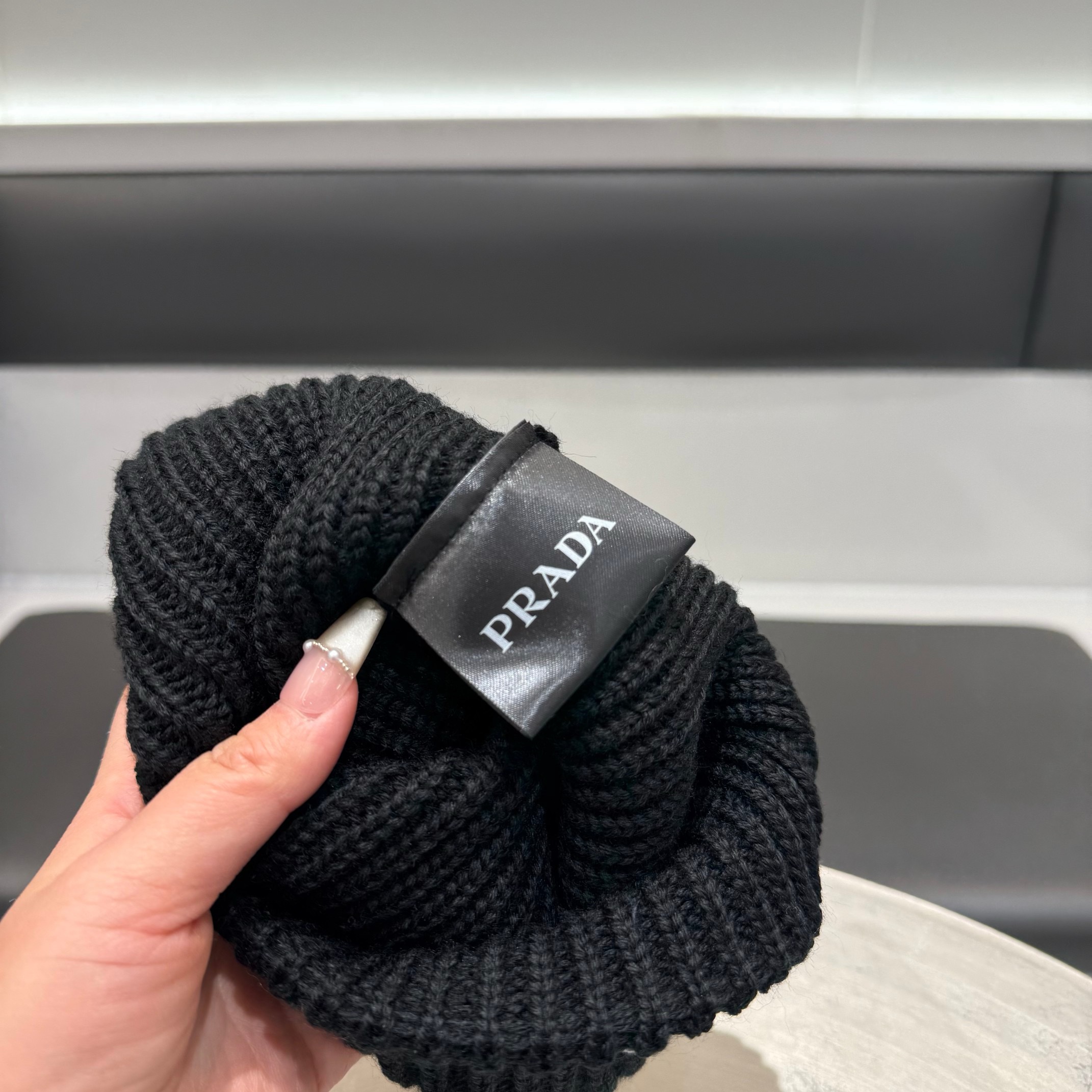 Prada针织帽高级的休闲感PRADA普拉达 三角形徽标滑雪冷帽 时髦保暖且高级的保暖冷帽
