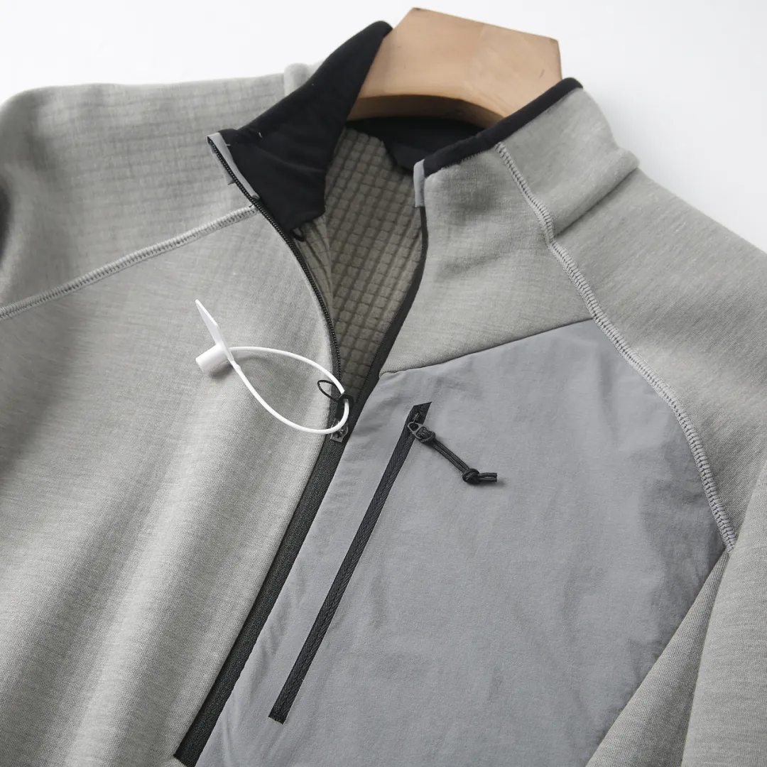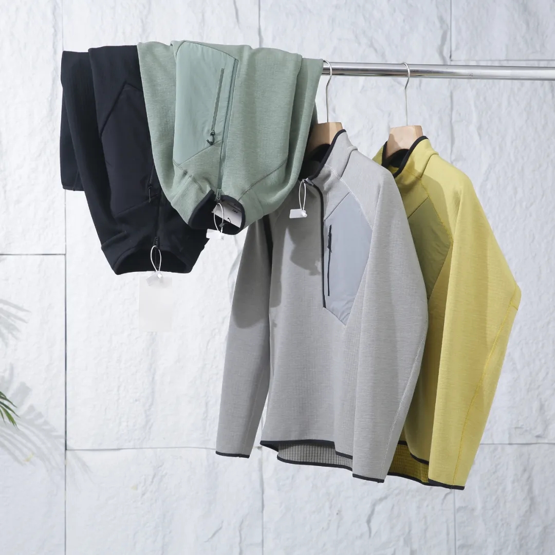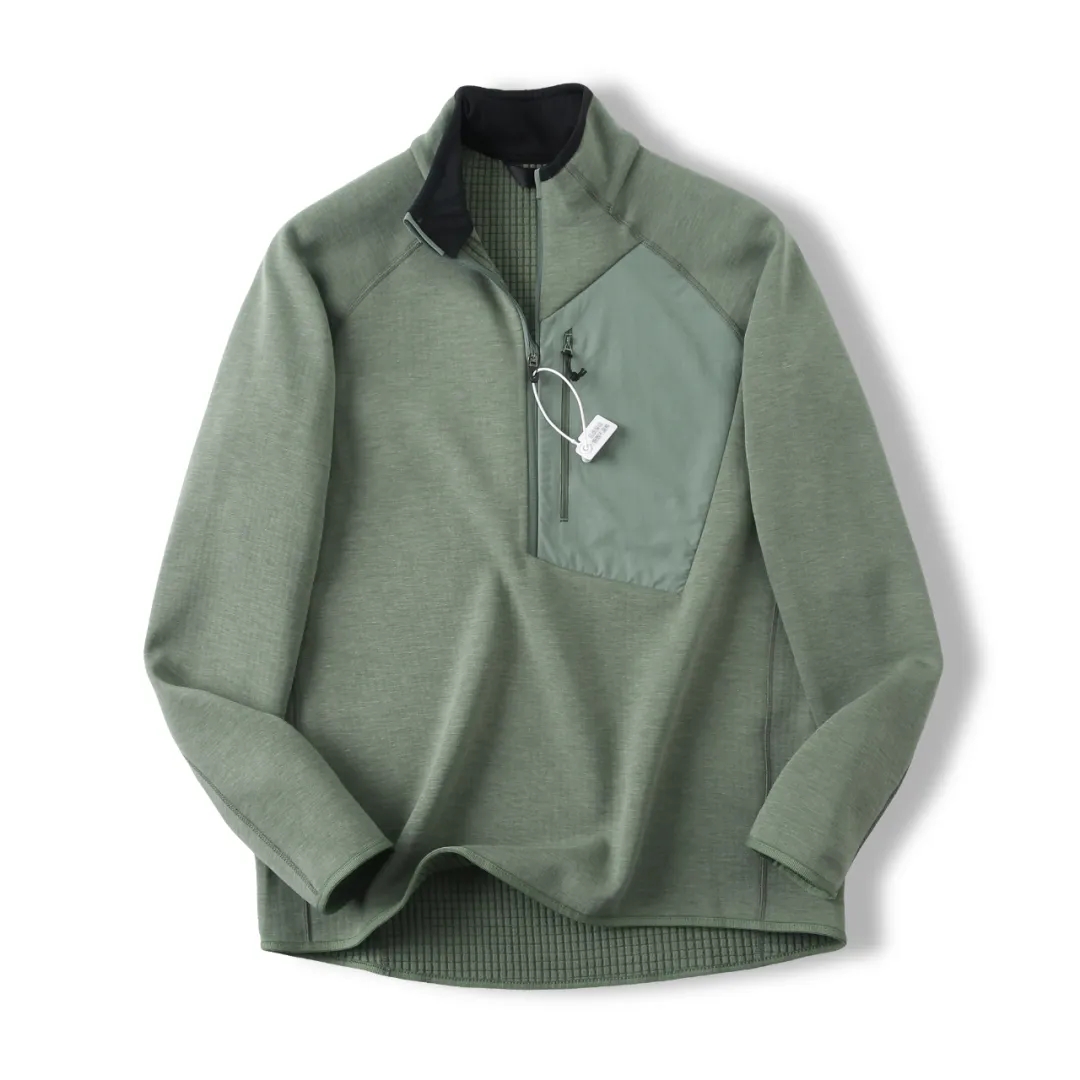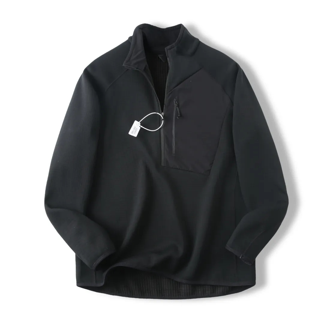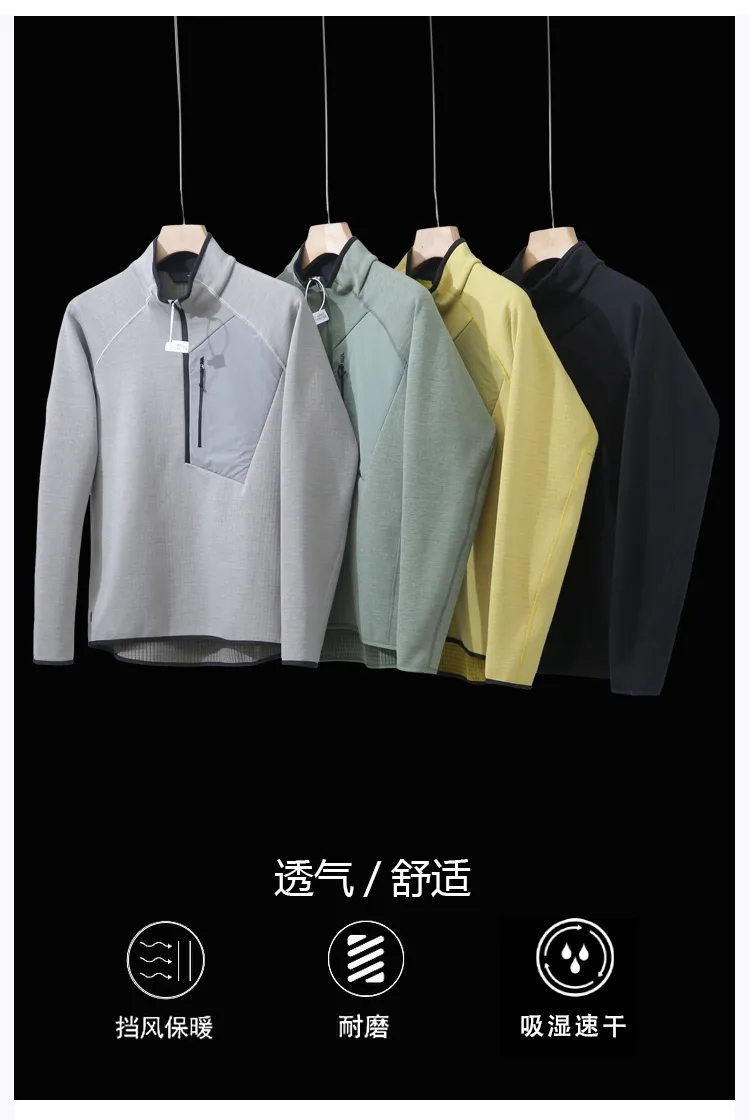 颜色;黑色 灰色 芥末黄 绿色 尺码:M---3XL:采用轻质、弹性的高质感抓绒面料, 舒适保暖,且具有良好的排汗性舒适保暖,提升舒适度 利落的立领设计, 前襟半拉链设计,更易于穿脱,在温暖的温度下可快速通风 紧身剪裁设计,可以穿在硬壳外套中当中层衣穿着,前胸带异形拉链口袋!提高辨识度!表层经久耐用防泼水处理 !