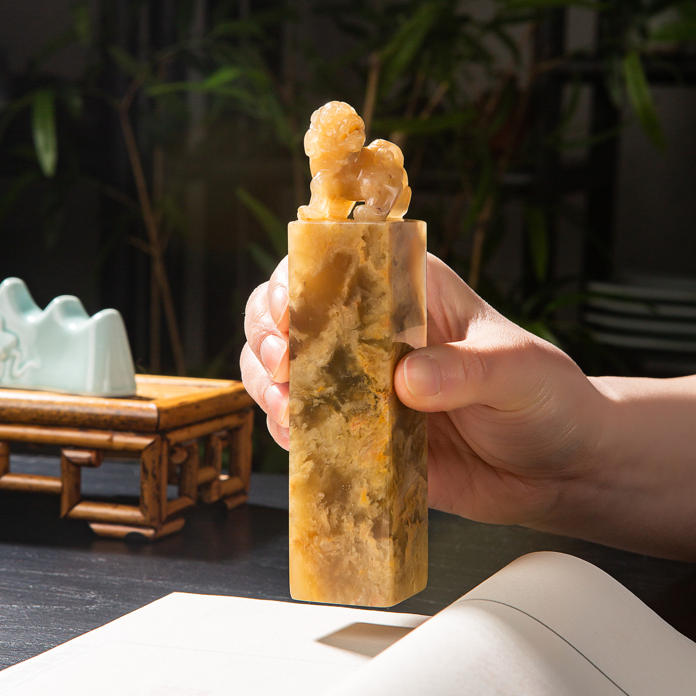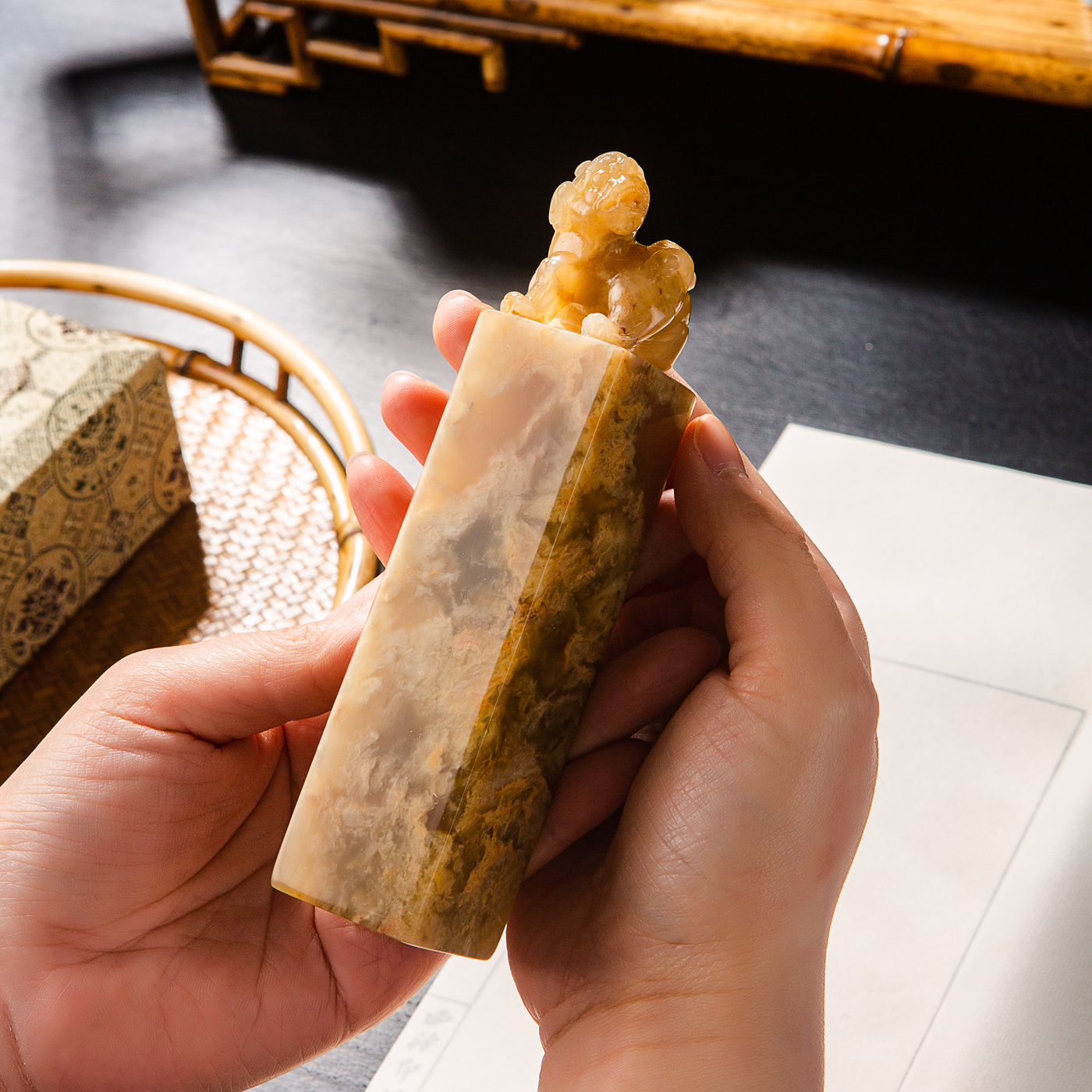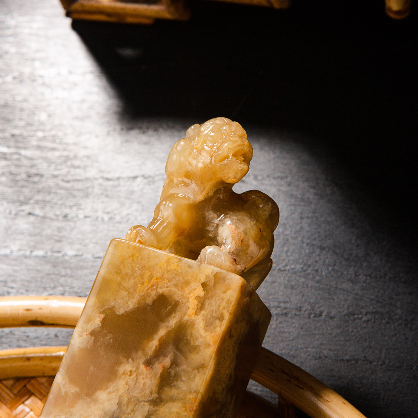 纯手工精雕印石,用料为存放几十年的老料,其雕工精美,质地温润,石性稳定,极为难得。