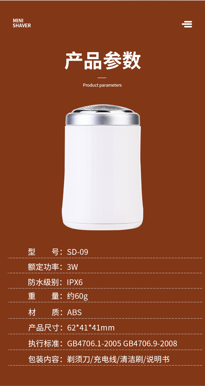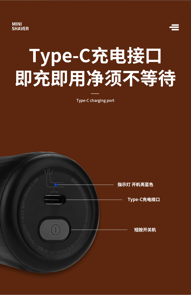 【便携随行 超长续航】便携式迷你胶囊剃须刀SD-09,Ipx6级防水 0.07mm超薄刀尖 续航30天!