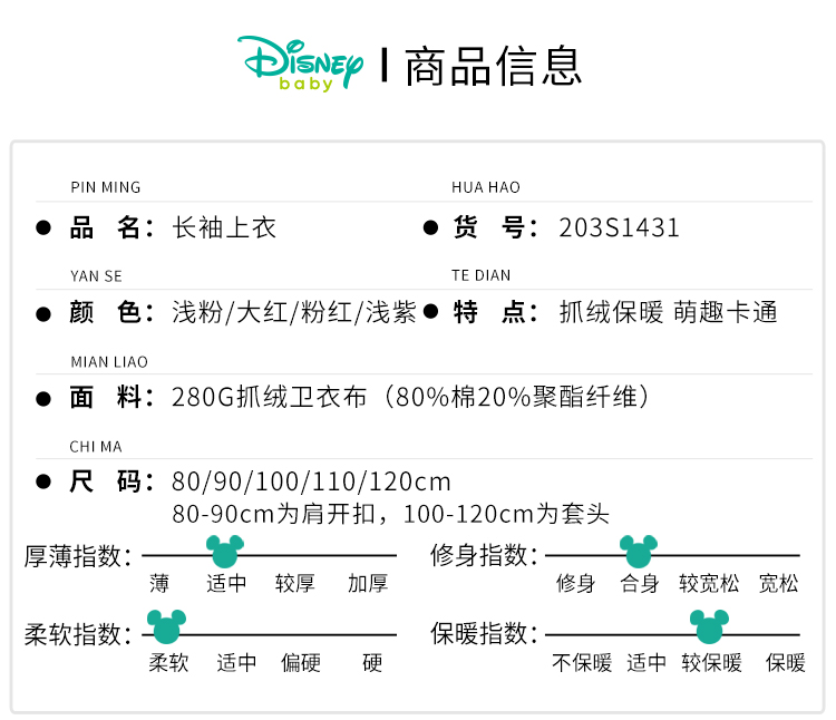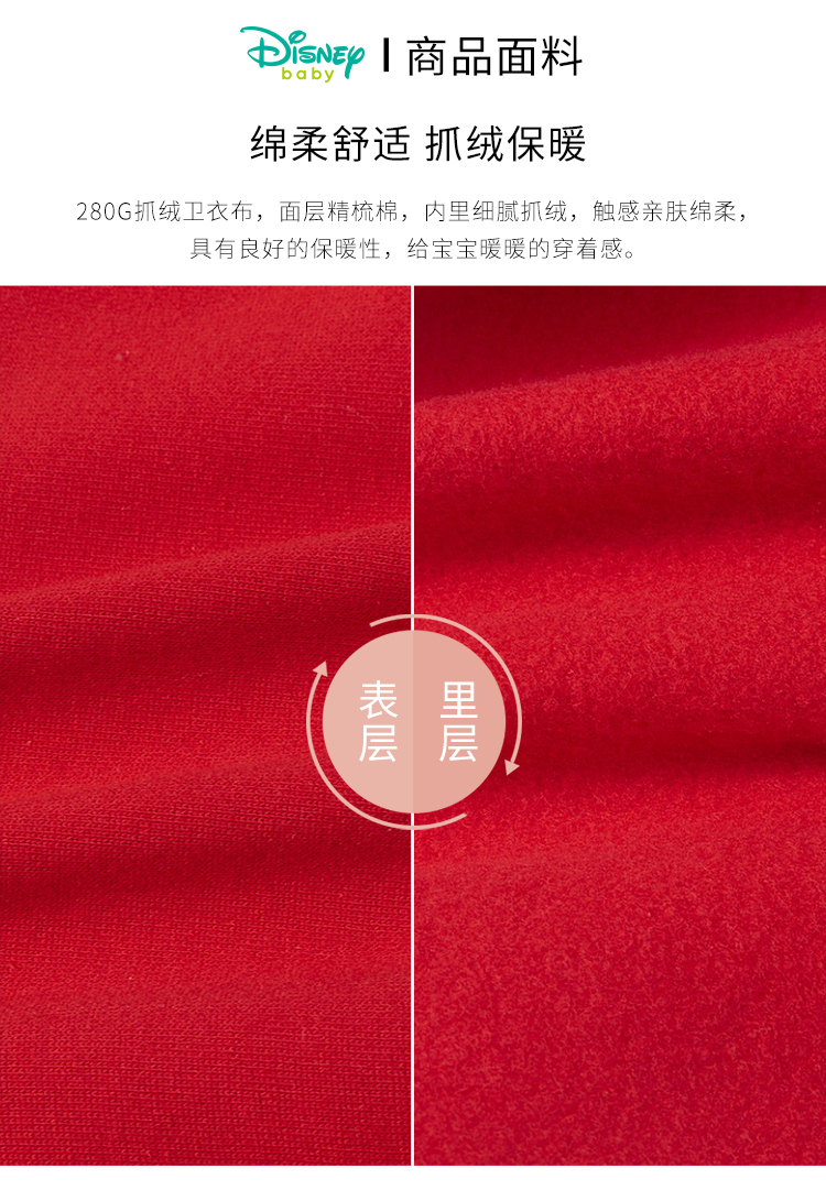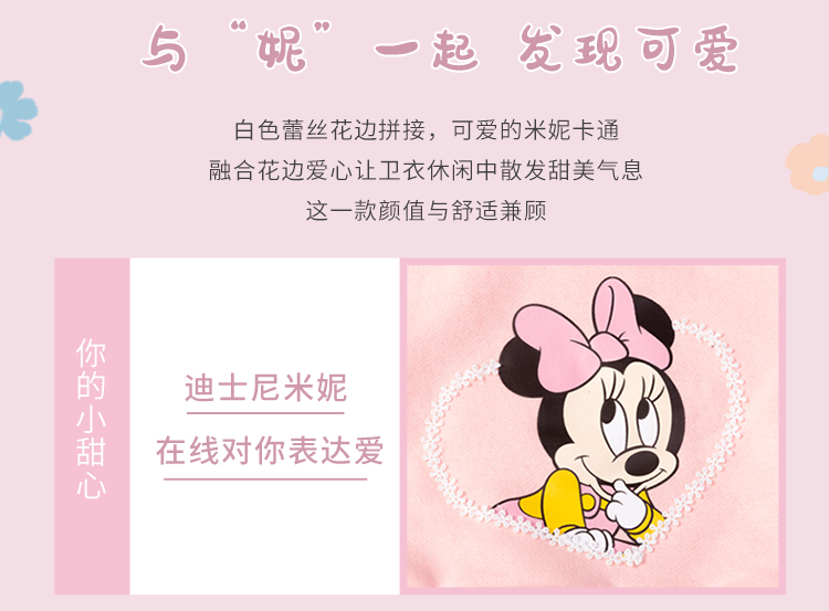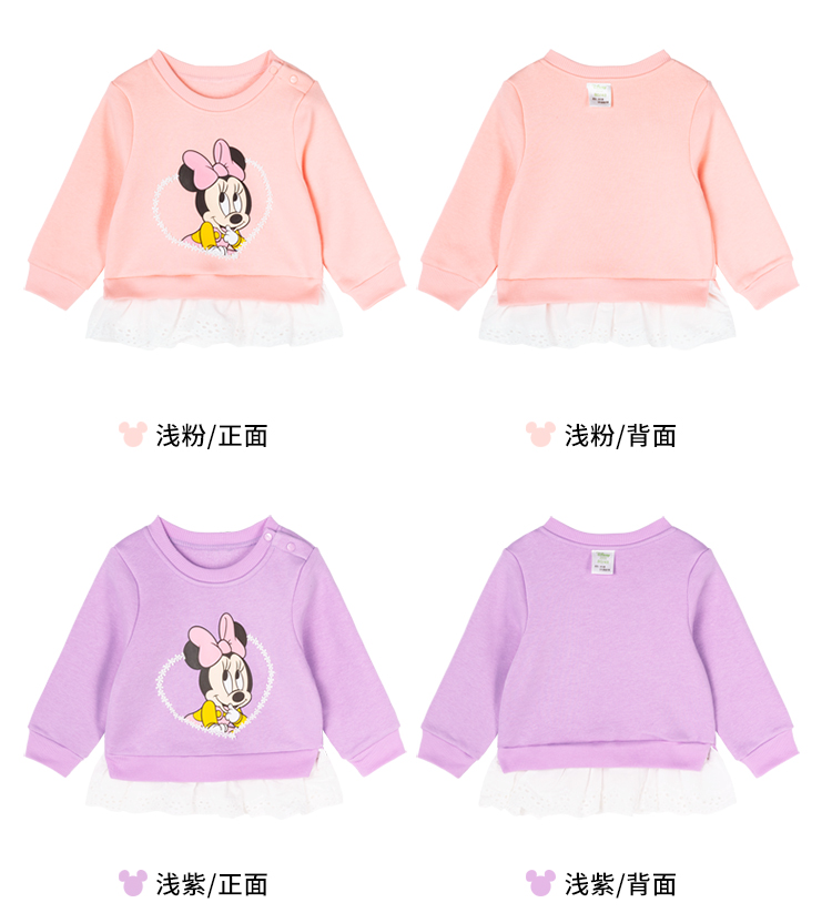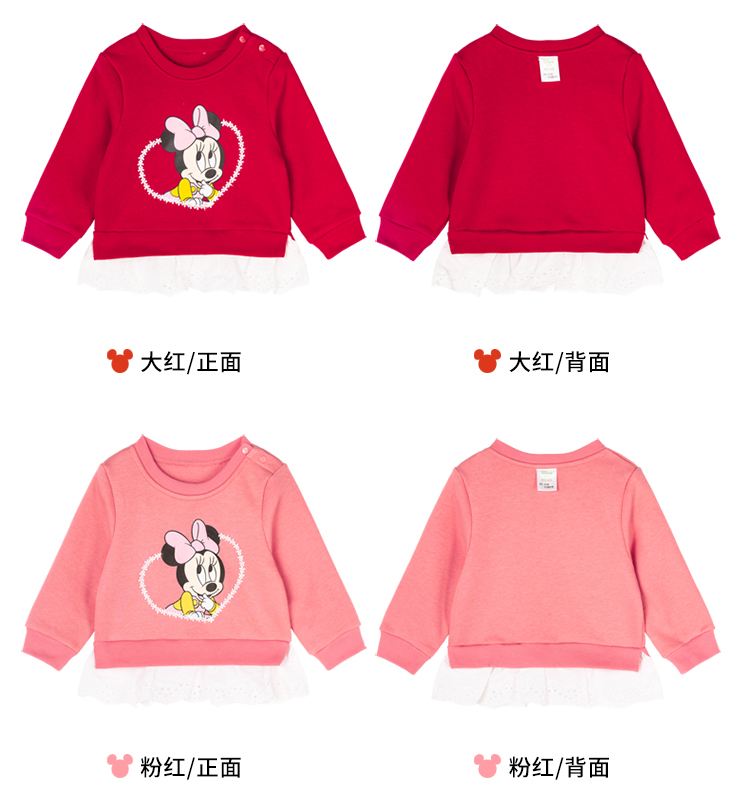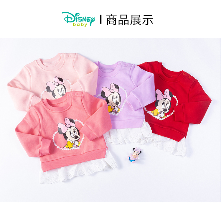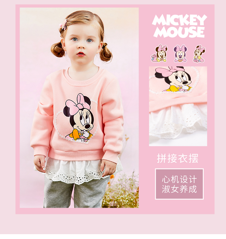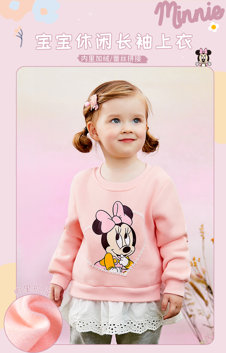 迪士尼女童春秋宝宝米妮卡通甜美抓绒保暖卫衣上衣