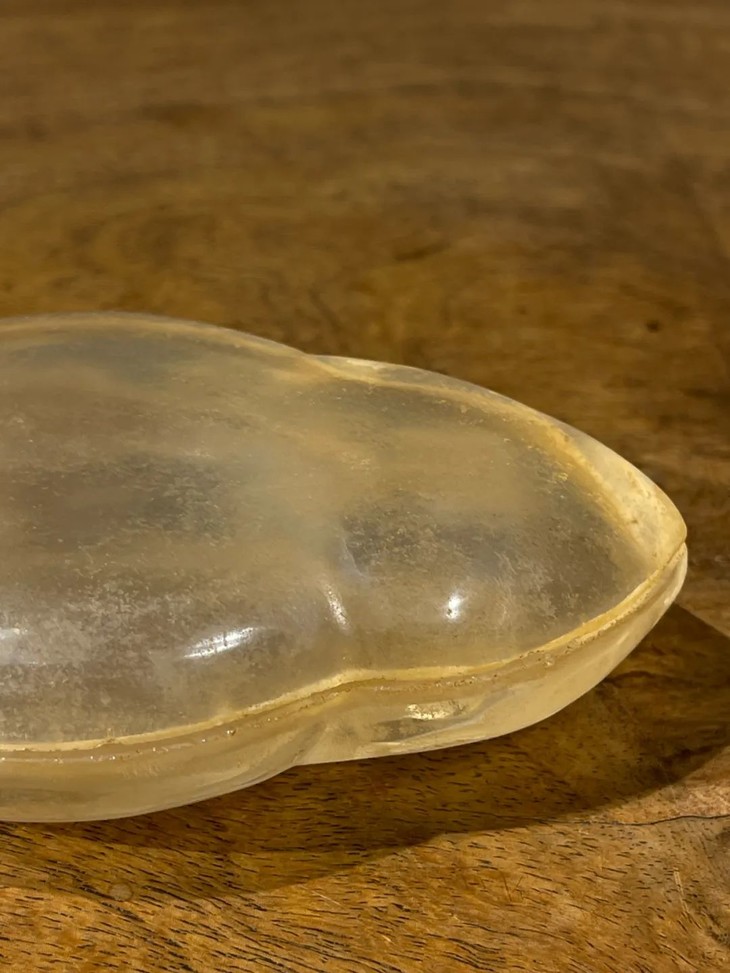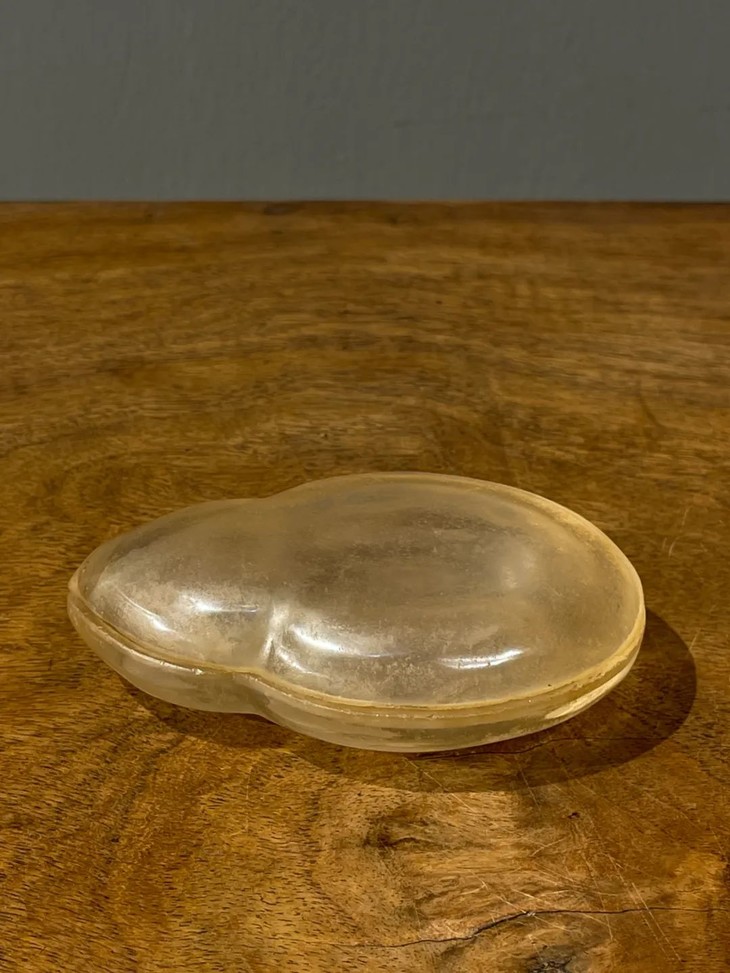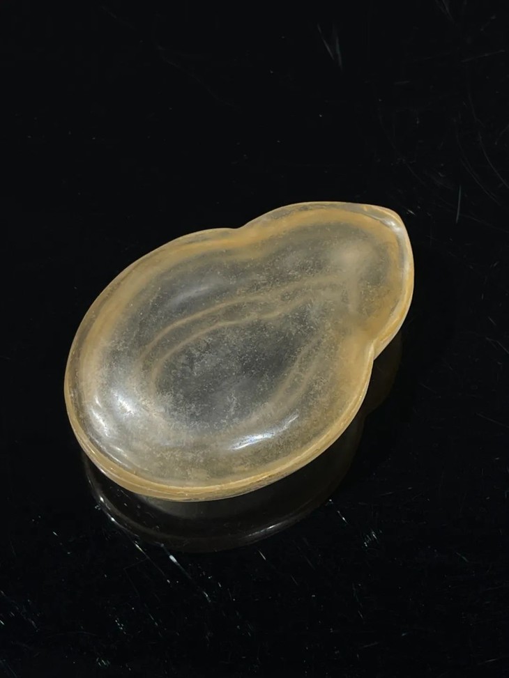 此天然水晶雕琢葫芦形盖盒,除几处表面细微老磕碰外,基本保存完好,水晶表面包浆皮壳温润细腻。