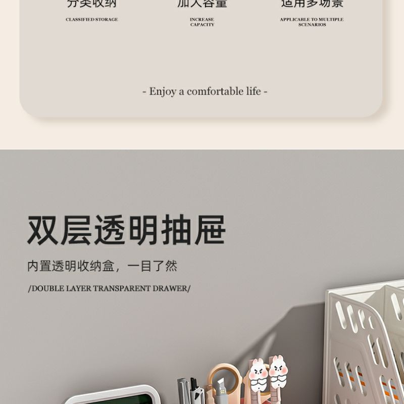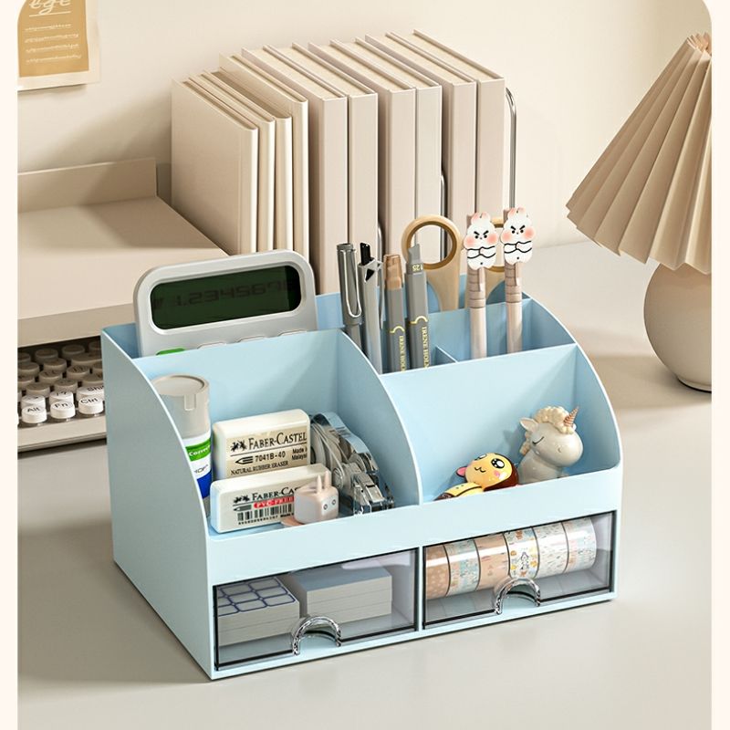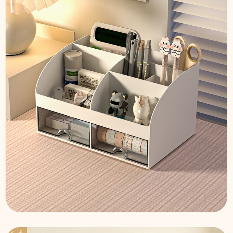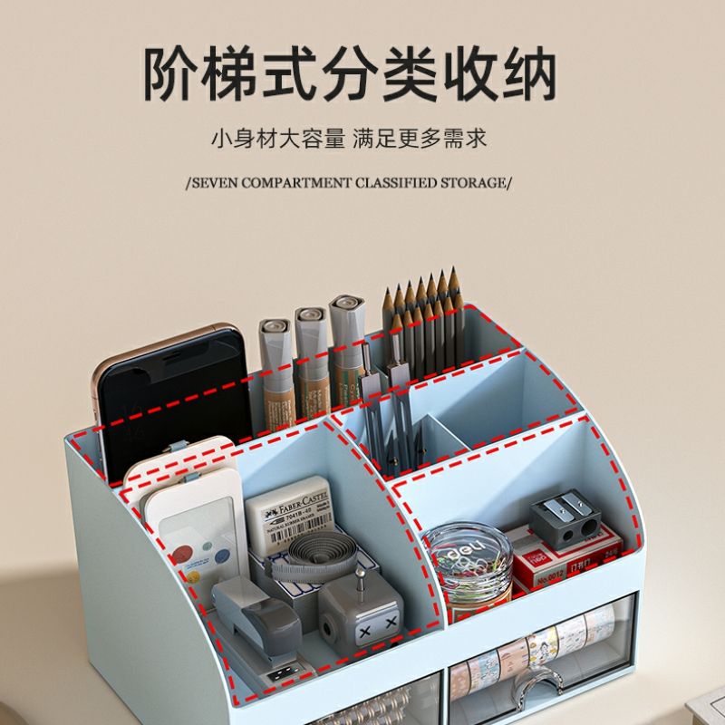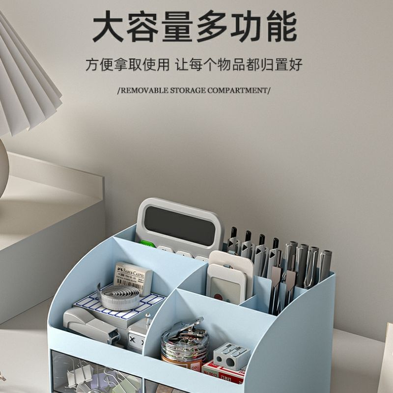 文具收纳盒桌面抽屉学生书桌笔筒工位手账整理神器办公桌上置物架