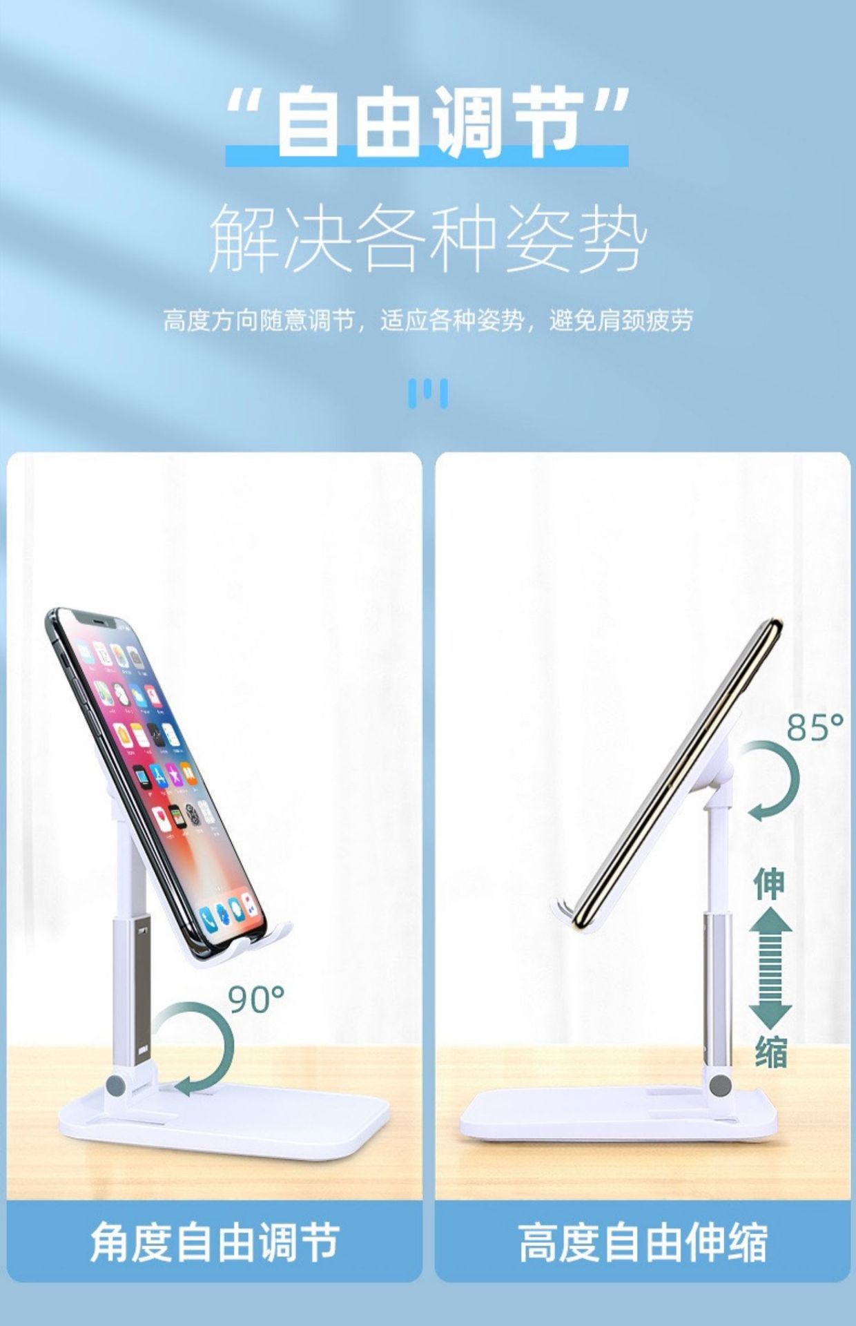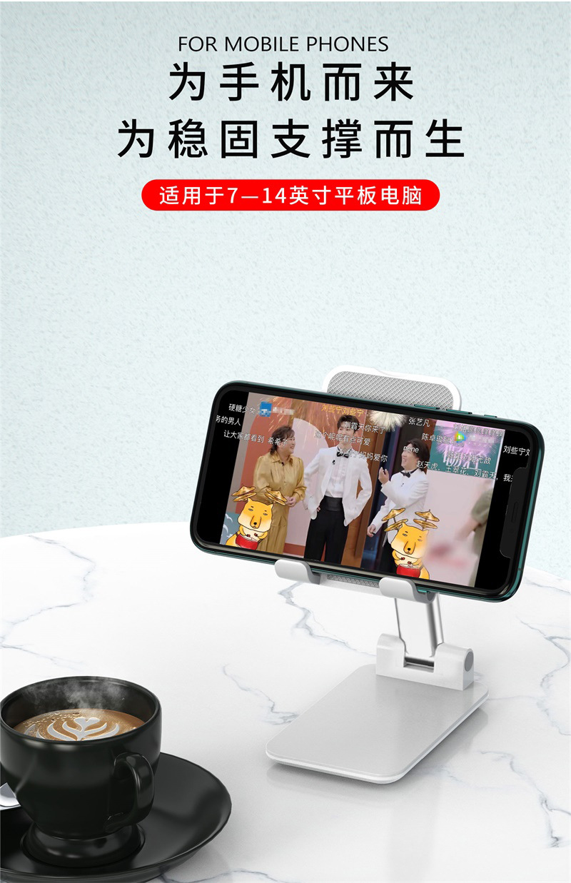 白色【海绵款T9-2】手机支架桌面懒人便携直播魔术可折叠调节手机架/个