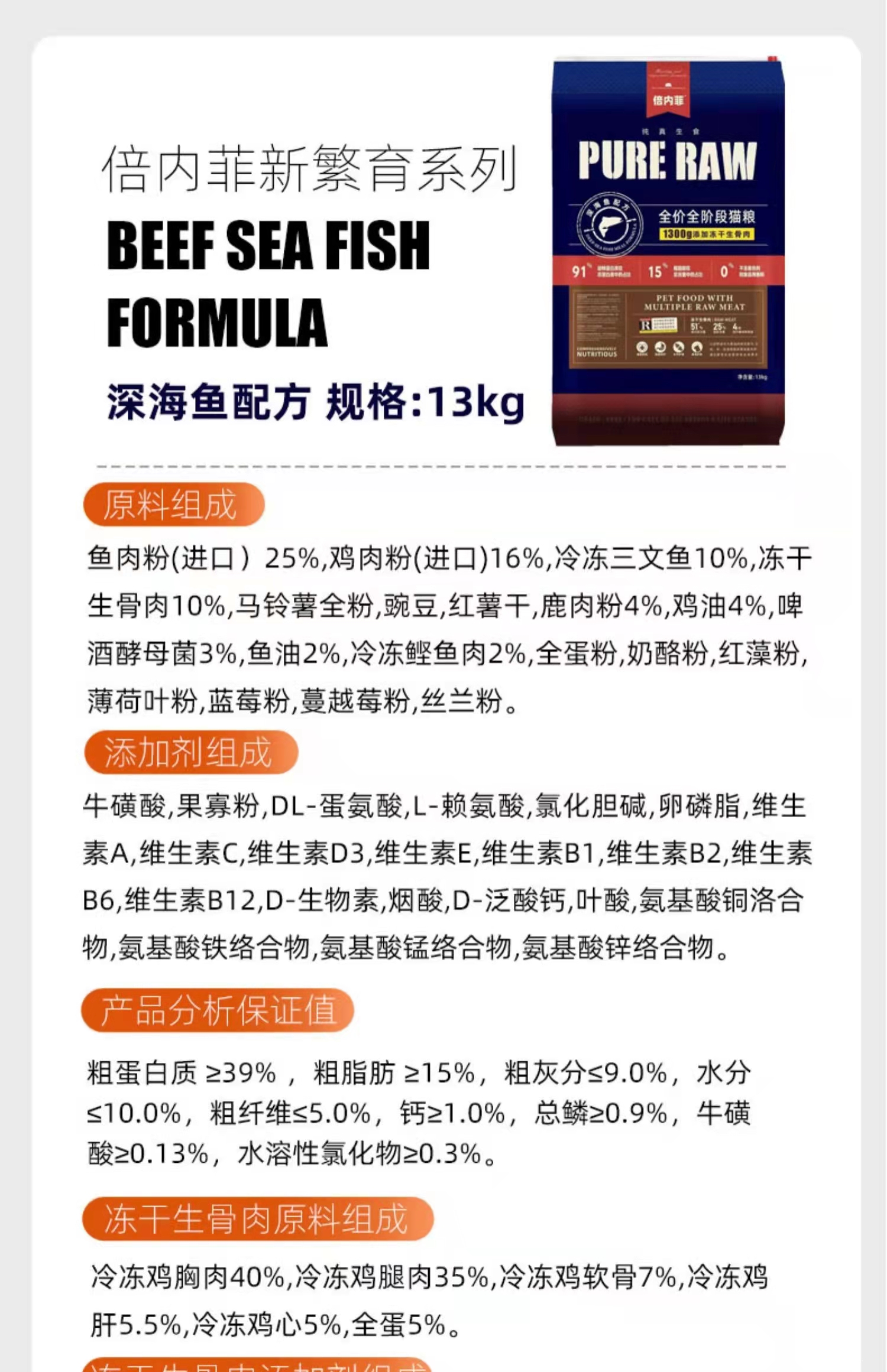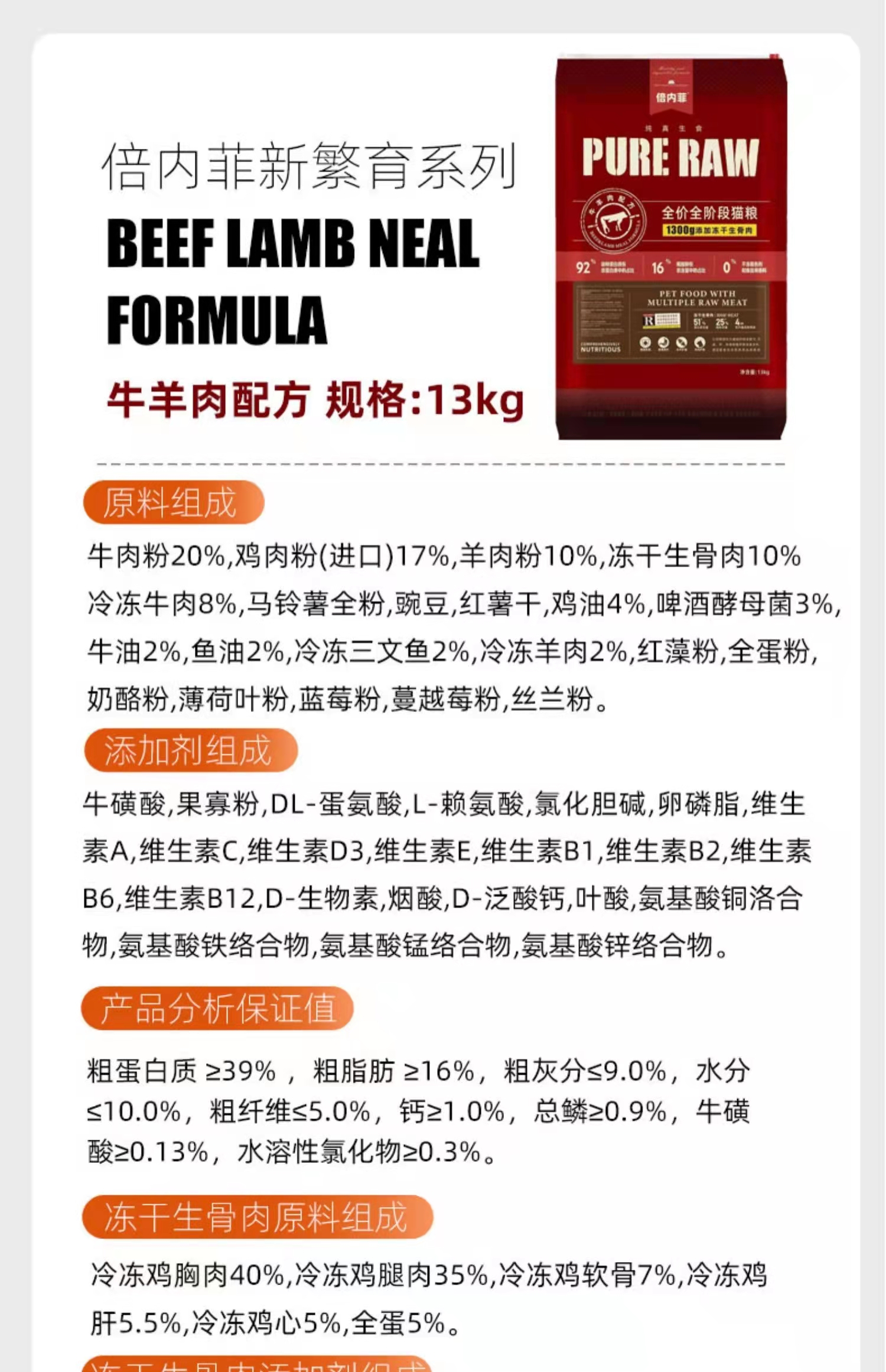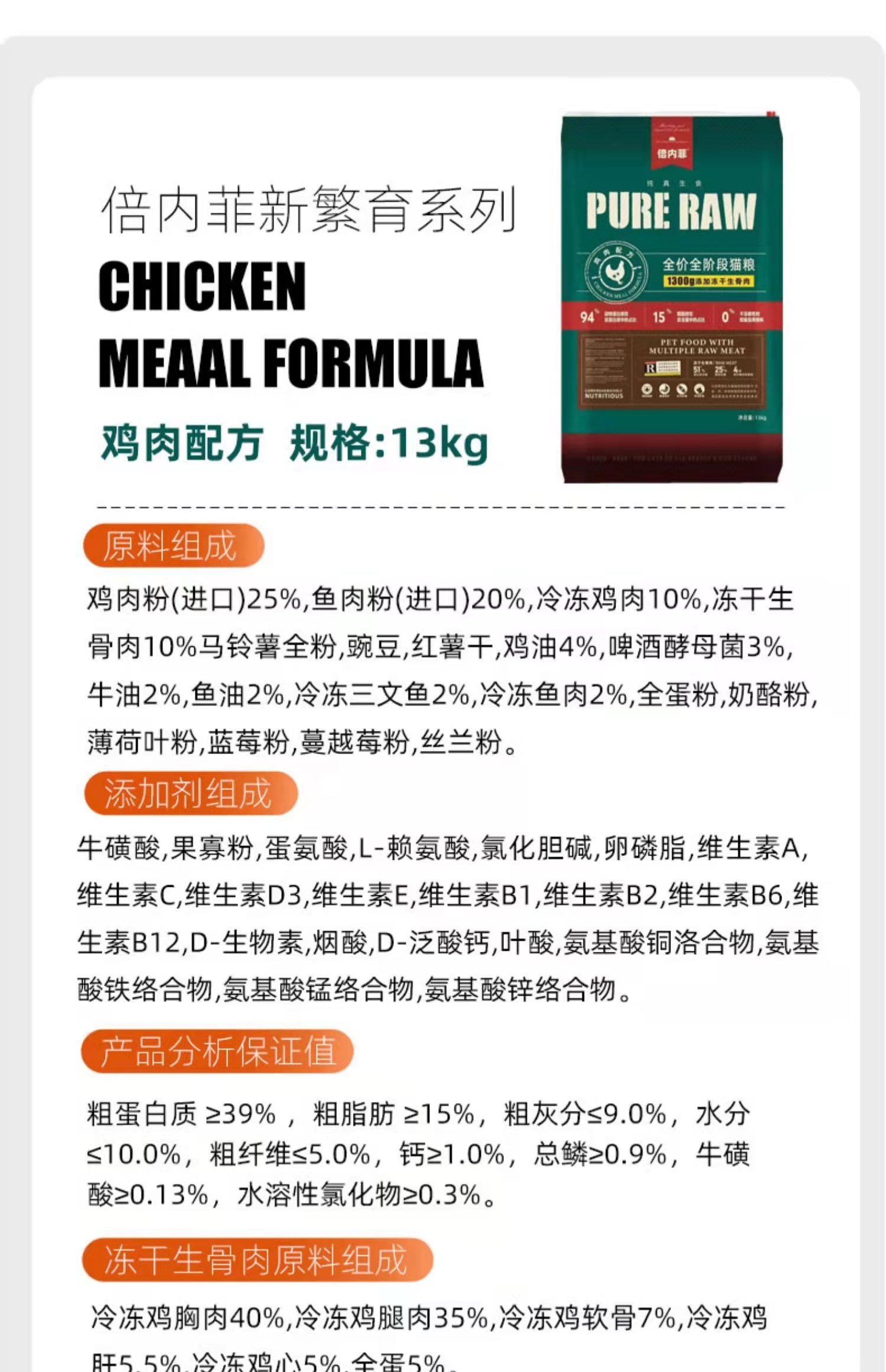 23款倍内菲繁育系列成幼猫生骨肉冻干全价猫粮13kg(下单请仔细阅读详情)