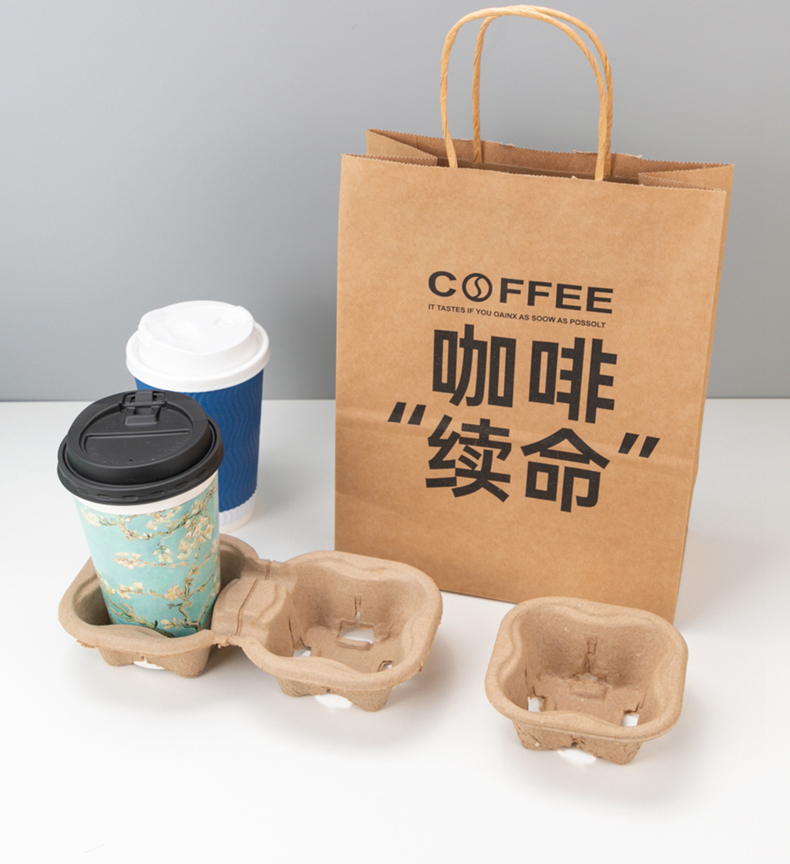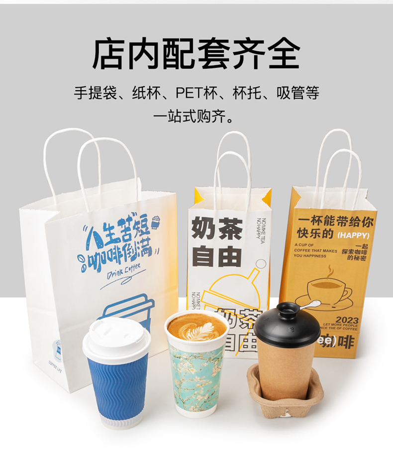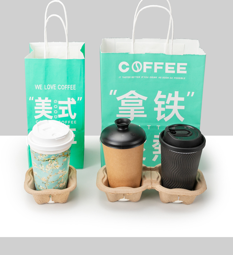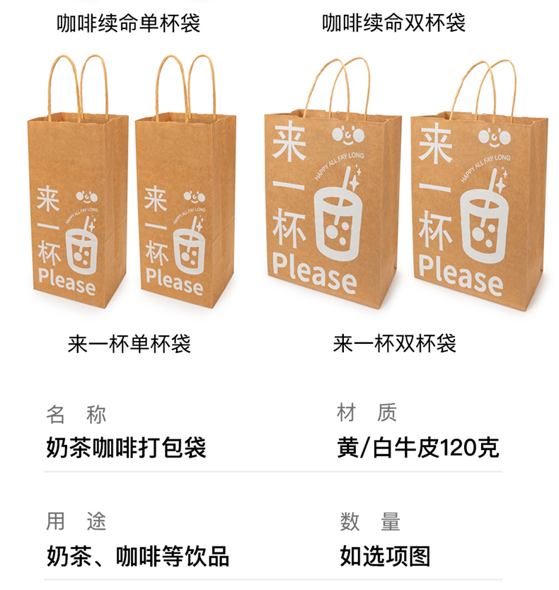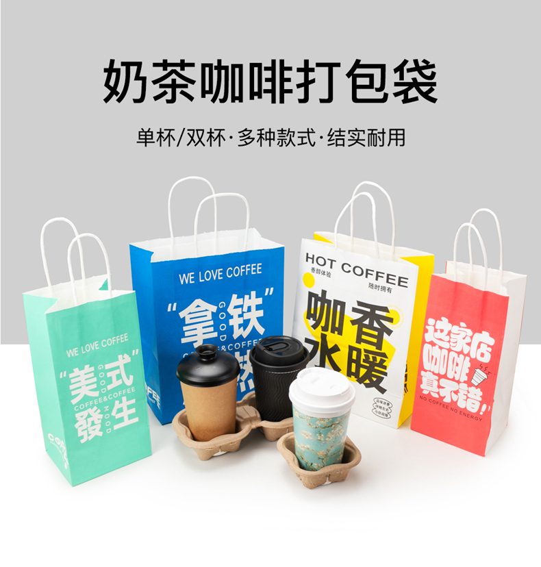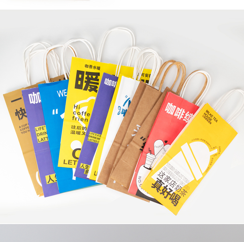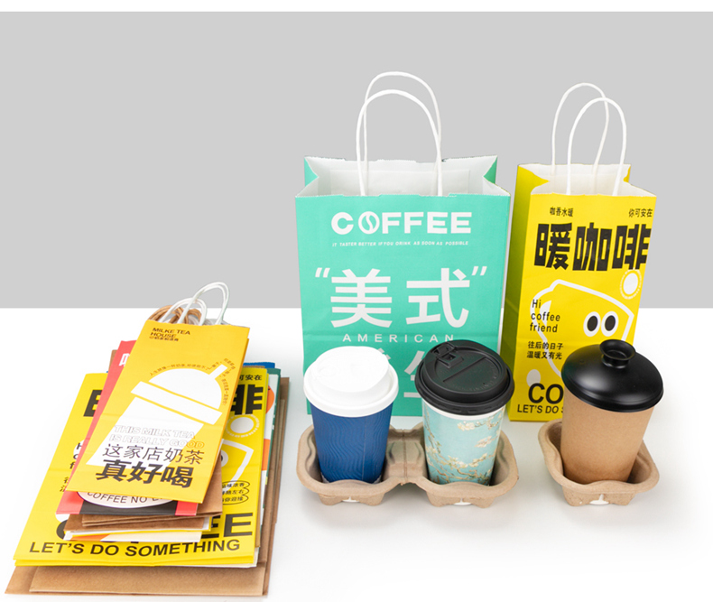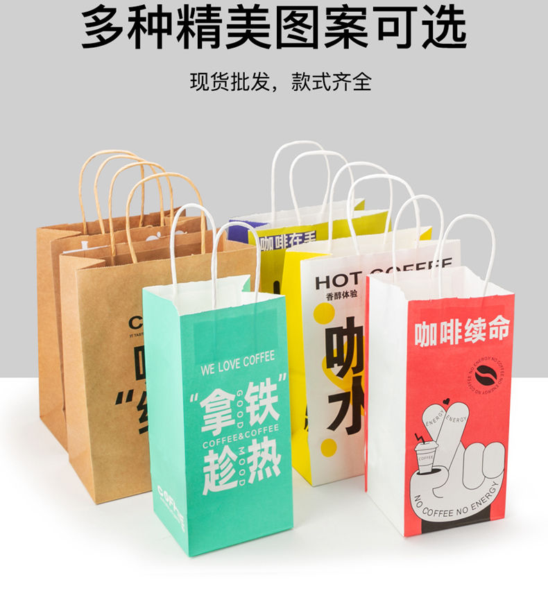 喇叭花网红咖啡牛皮纸手提奶茶打包袋外卖牛皮纸袋购物礼品纸袋