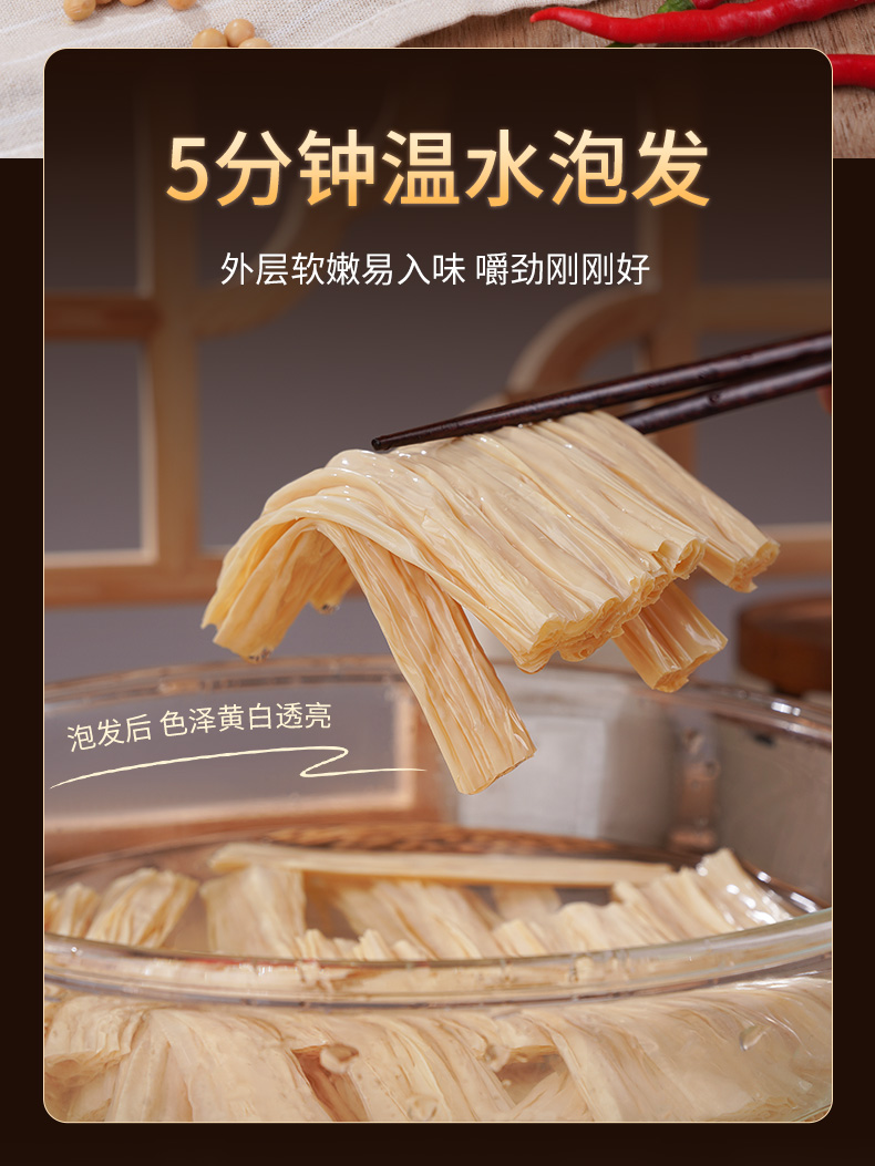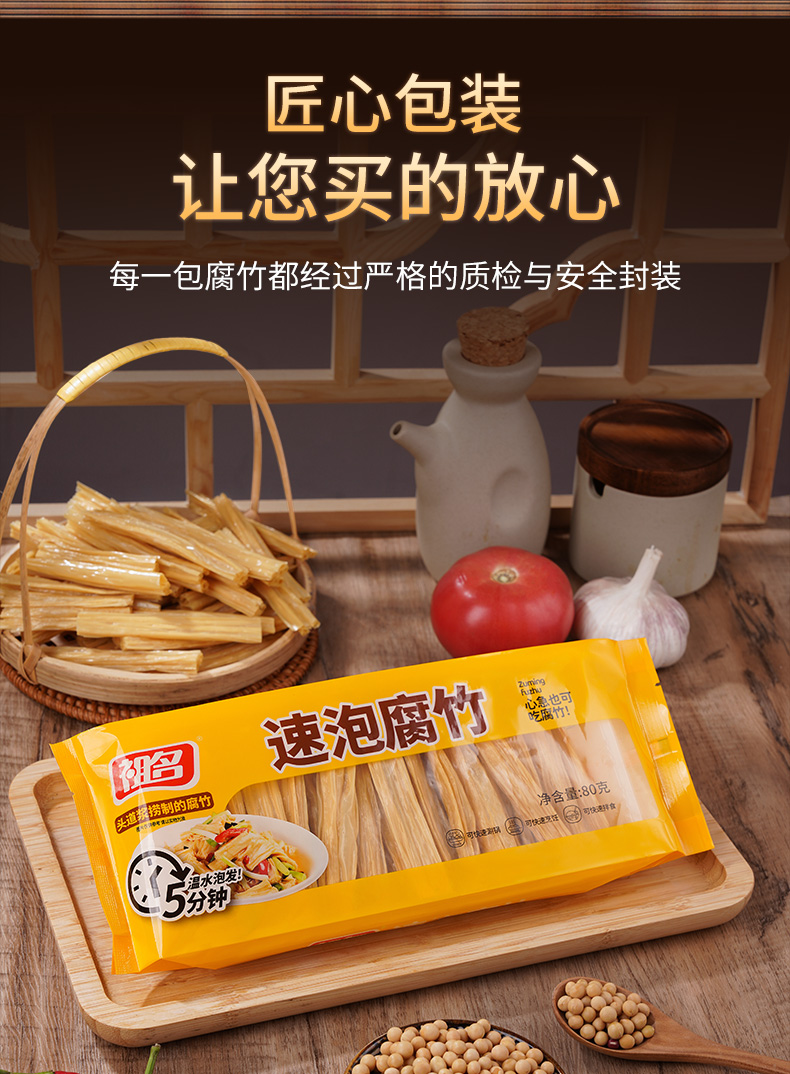 祖名速泡腐竹干货新鲜头道捞制腐竹段火锅凉拌配菜批发80g*2袋
