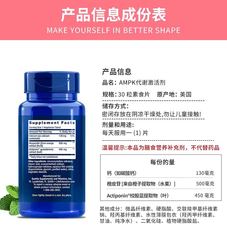 沿寿LIFE EXTENSION AMPK MetabolicActivator 30粒