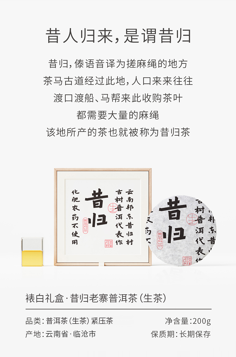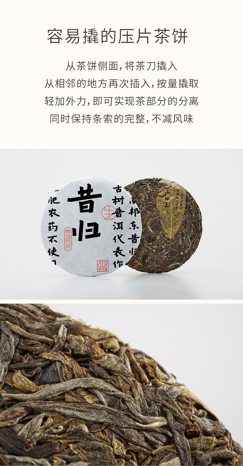 山田土 2018年古树纯料【昔归】普洱茶生茶老茶饼200g黑茶