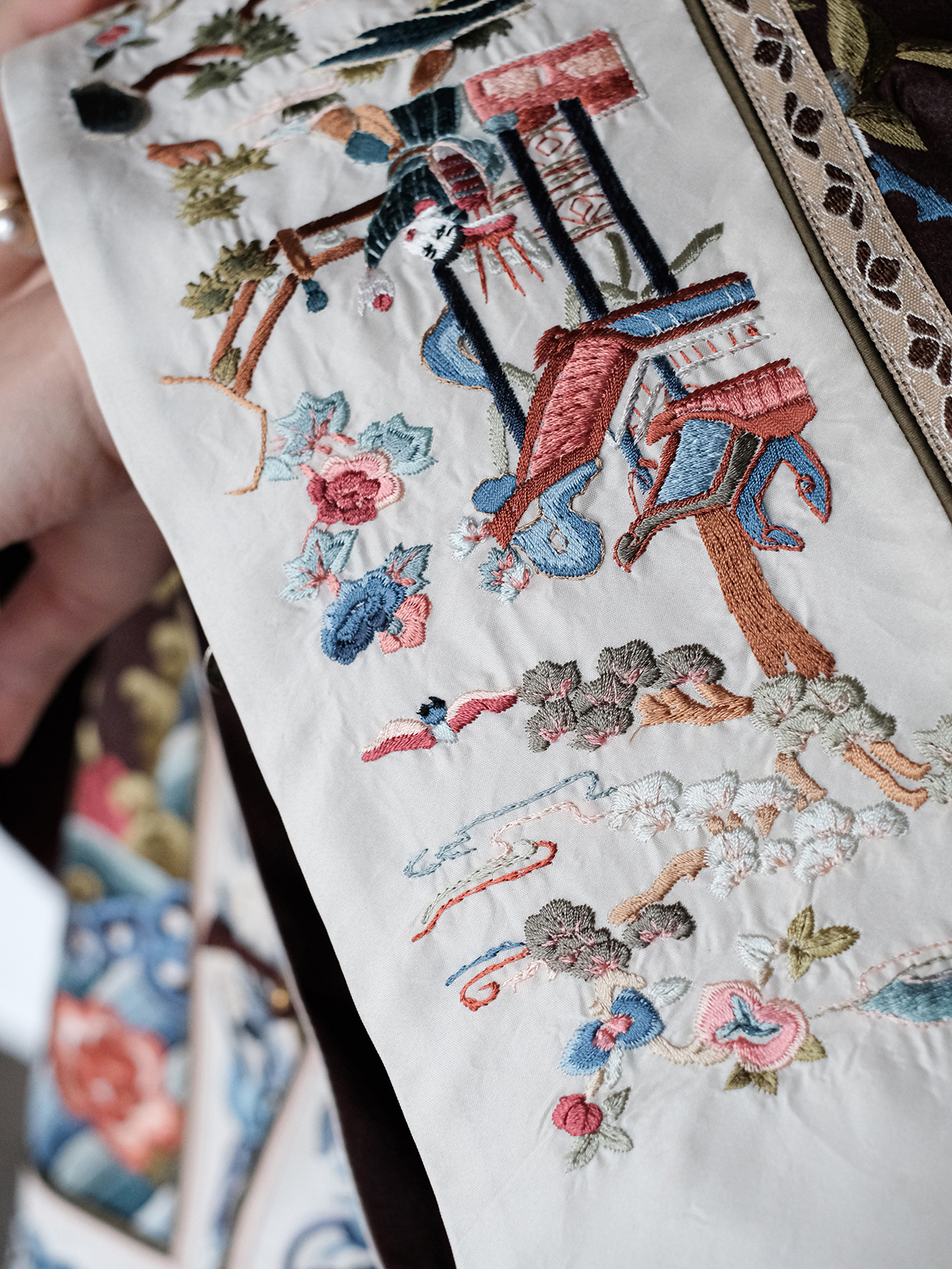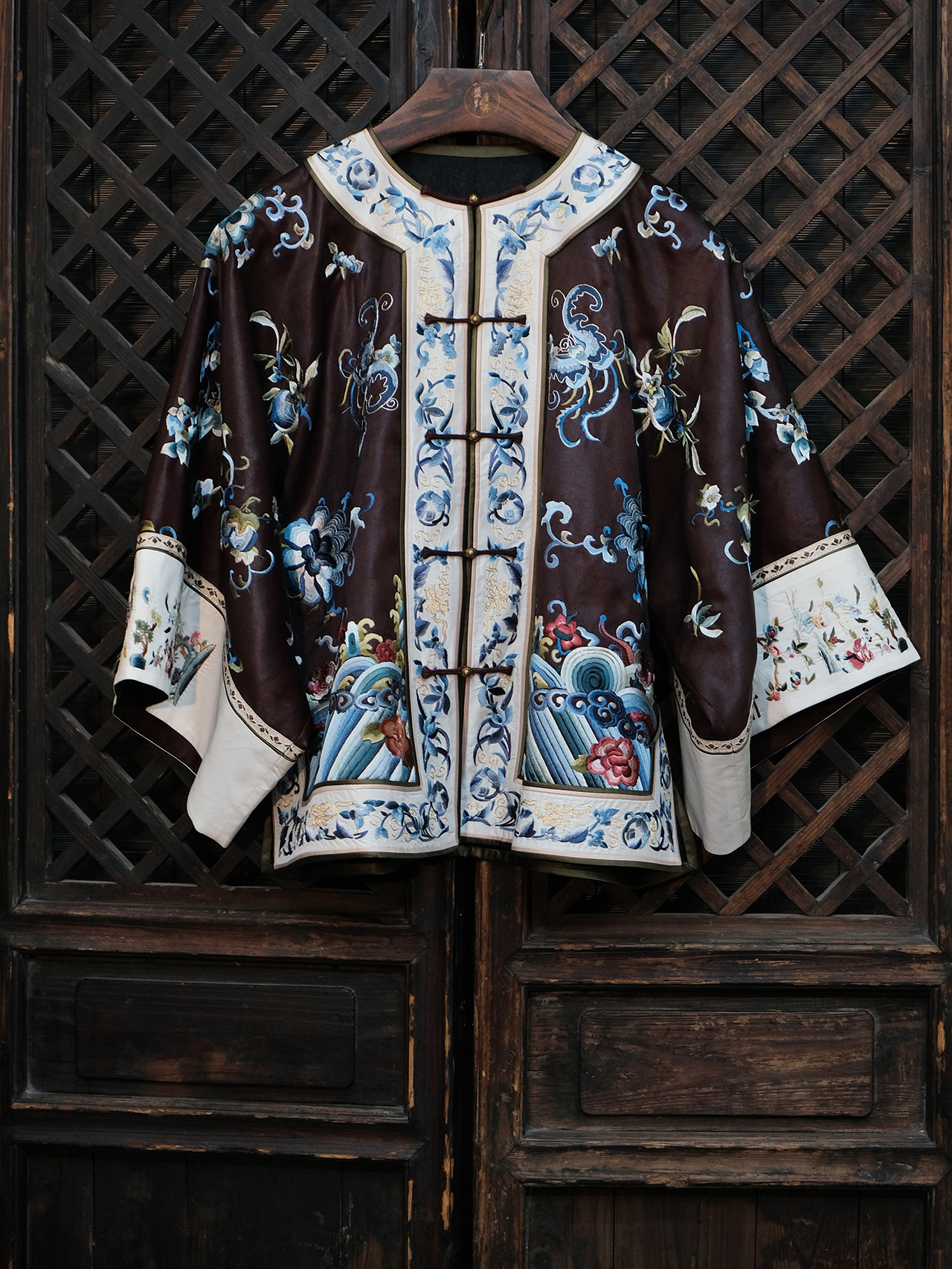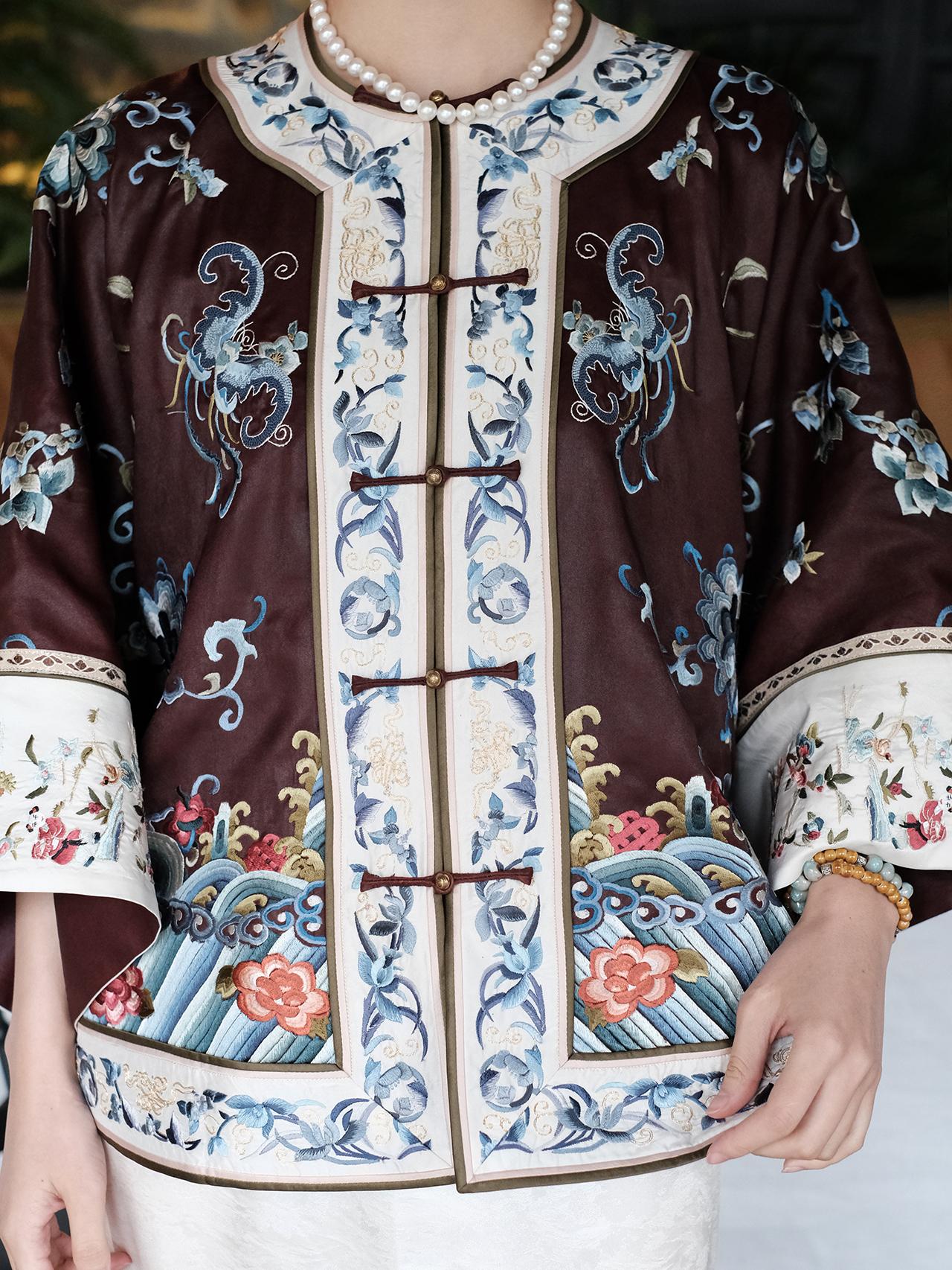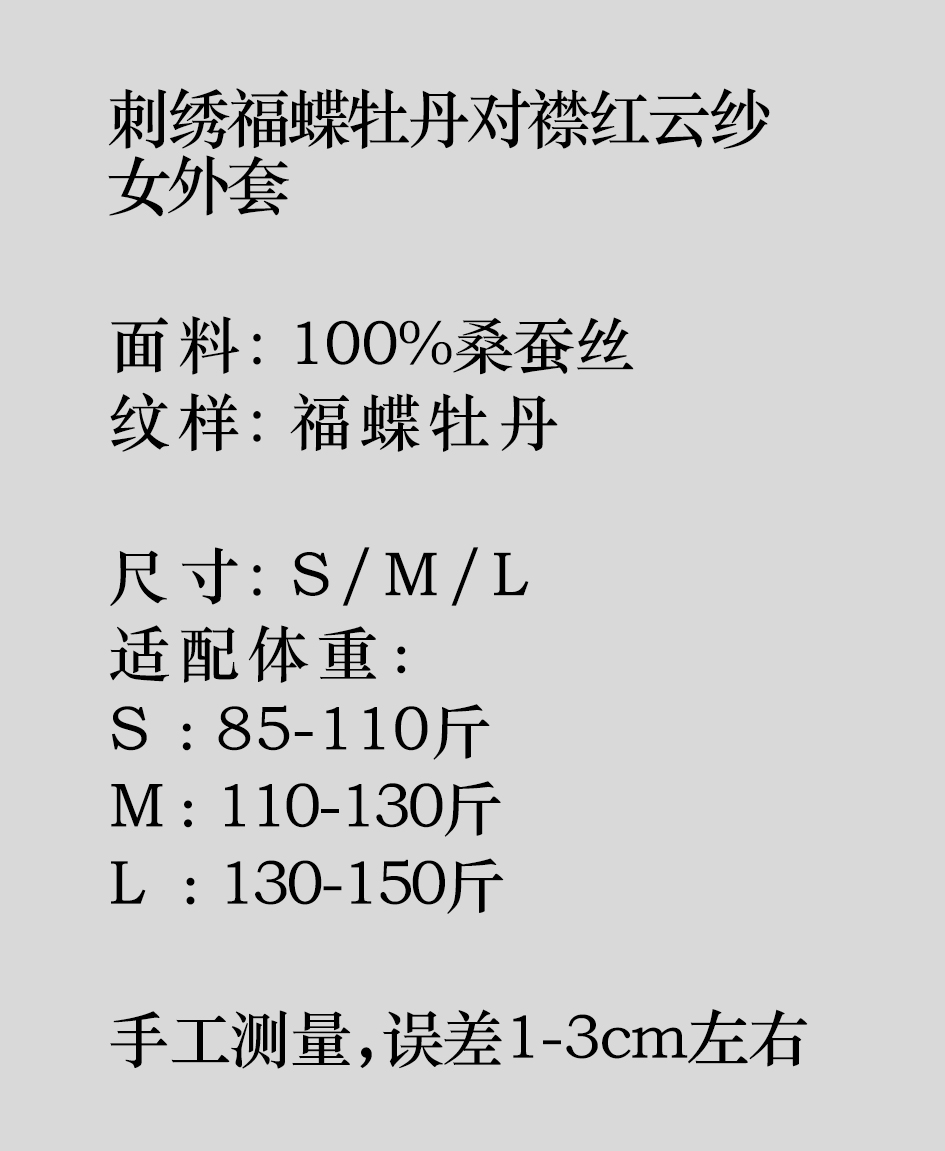下架 |盛唐牡丹盛奢系列| 限量款| 高货-刺绣福蝶牡丹对襟红云纱女外套(特殊商品不退不换)