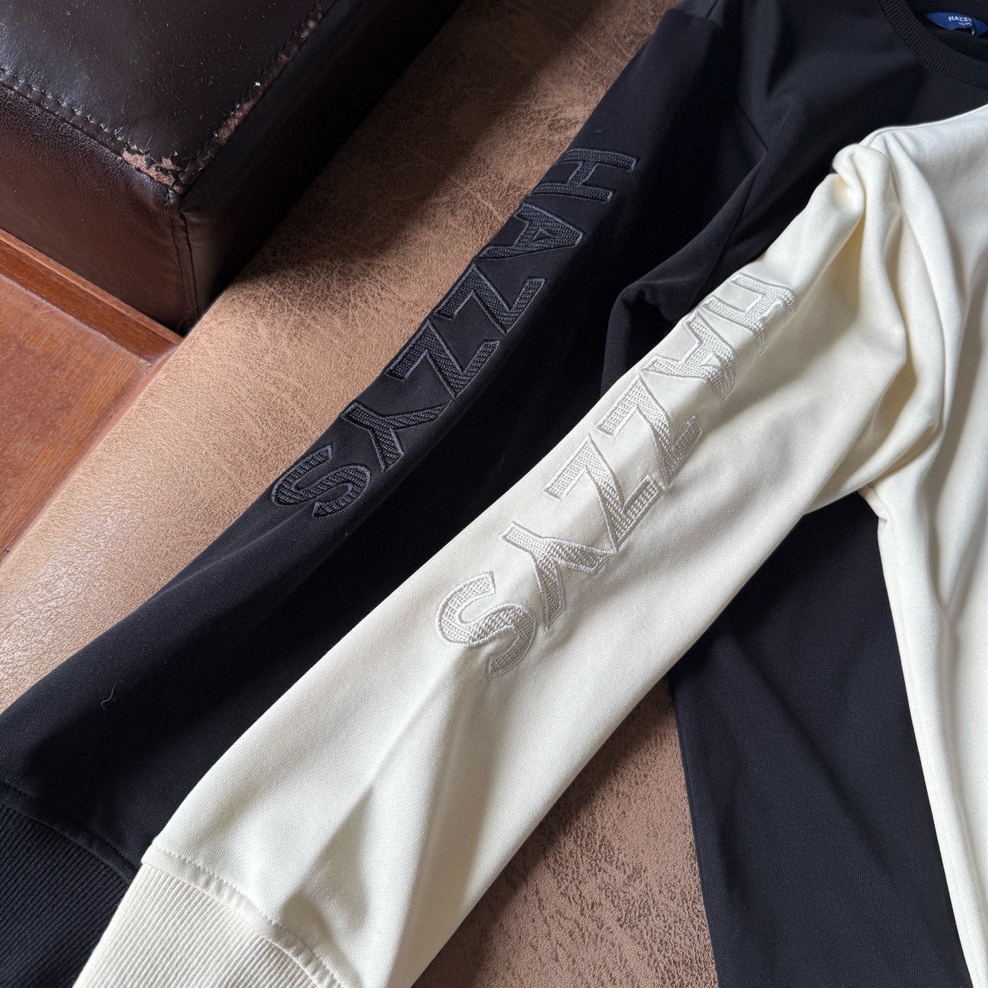 【秋季甄选】男士圆领卫衣纯色简约刺绣套头休闲上衣!!摒弃复杂,回归本源以空气层工艺重塑它的形态面料柔弹自带支撑感,形成轻盈的微气候,温柔应对四季温差为休闲比例的轮廓赋予悠然日常氛围!!秋季主打纯棉简约风减龄圆领卫衣。320克纯棉毛圈,进口机器绣花工艺!!三明治组织结构锁住暖空气面层柔软、里层稳固,上身有型带支撑感布面呈自然肌理感,不易塌陷走样面料成分:80.2%棉 13.1聚酯纤维 6.7%氨纶想要拯救直男审美,轻松穿出精 致感,怎么能少了这件卫衣。微宽松版型,可以更好修饰身材,上身挺阔又随性,藏肉又显瘦。面料自带肌理感,直接直接拉满,远看是基础课,近看满满设计感。胸口的刺绣彩色皇冠狗和袖子上的字母logo,既能增加时尚活力,又能彰显品味。日常逛街休闲随意搭配,不管是休闲风还是运动风,通通拿捏。这么好穿有好搭的卫衣,哪个男生能不爱。