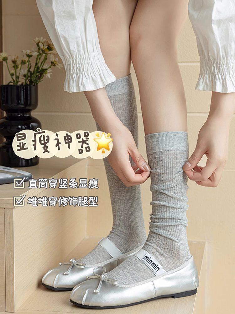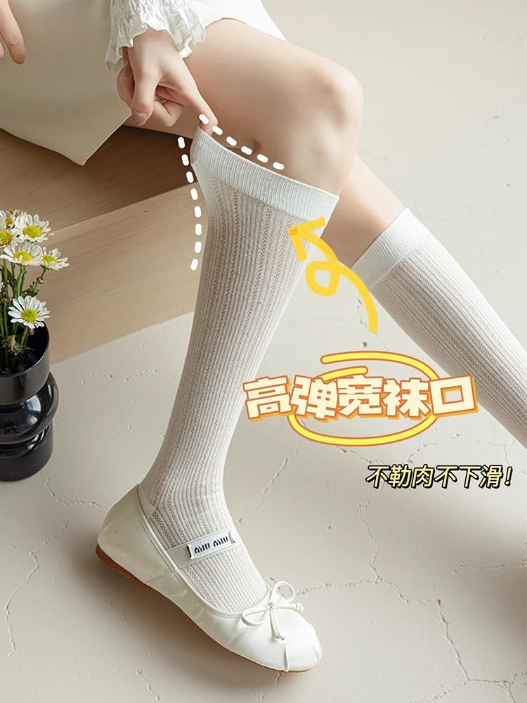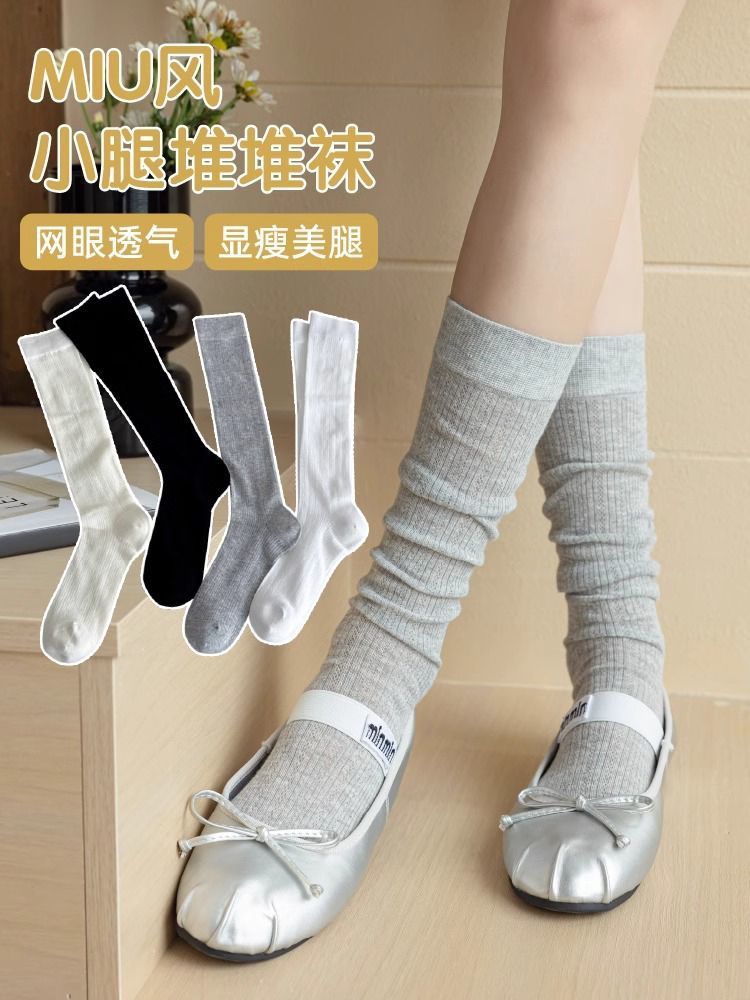 【9.9任选❗️芭蕾风镂空网眼堆堆袜子】直筒竖条显瘦,轻薄透气 甜美百搭 有氧呼吸 拒绝黏腻!女春夏薄款压力瘦腿jk中筒袜ins潮小腿袜-d