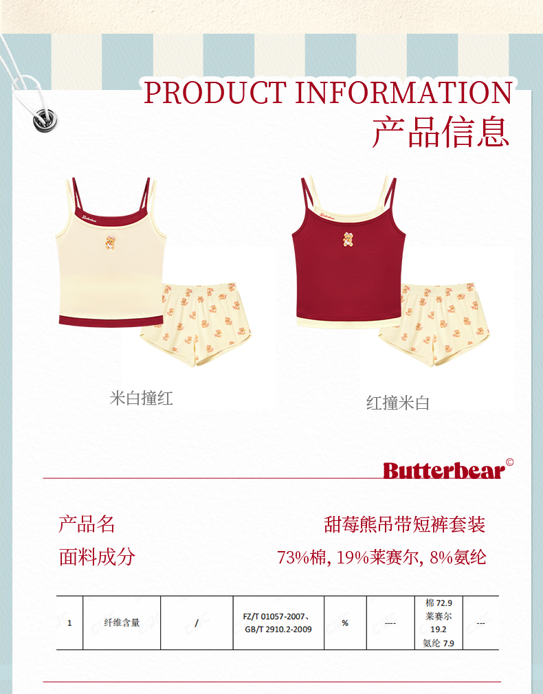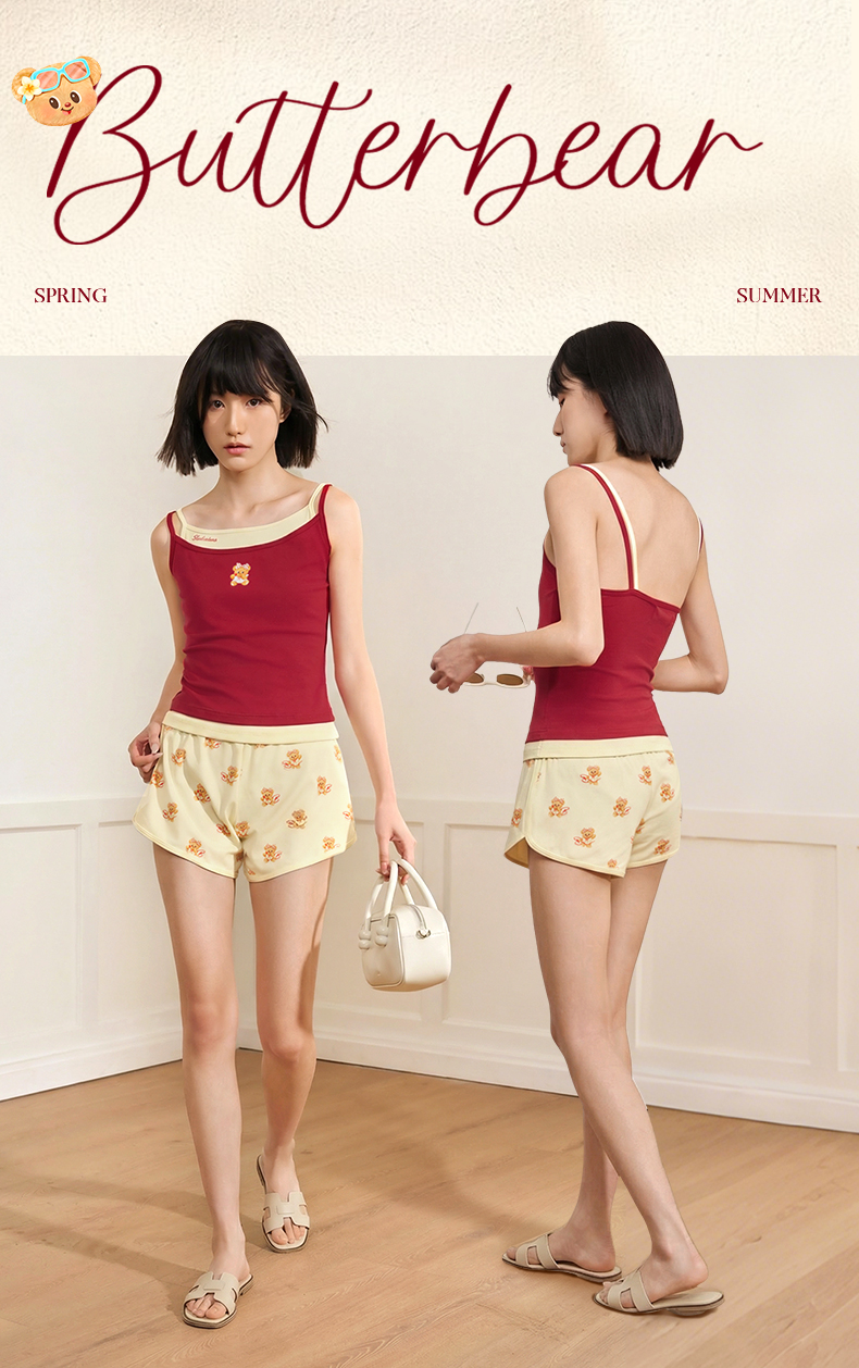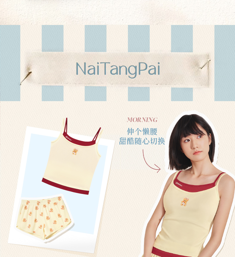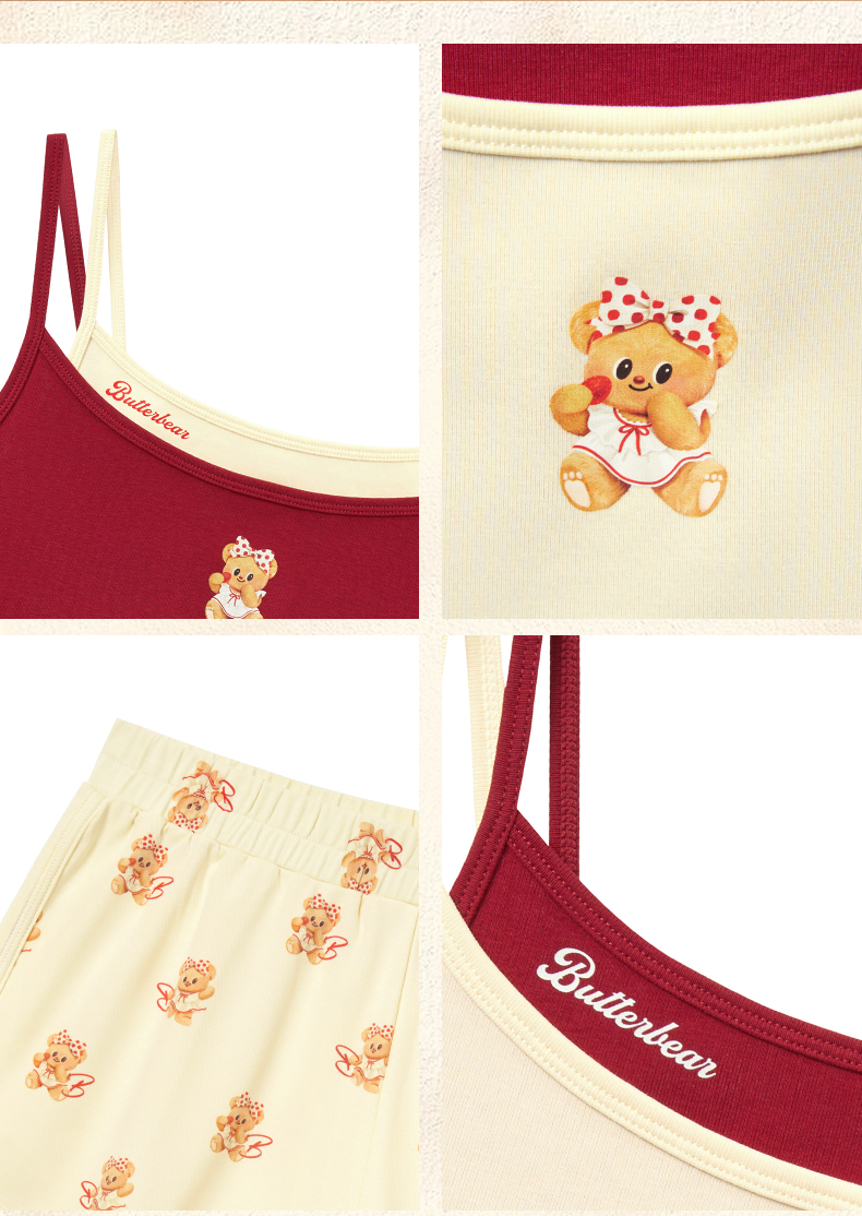 奶糖派甜莓熊吊带睡衣女款夏季薄款透气黄油小熊联名家居服可外穿