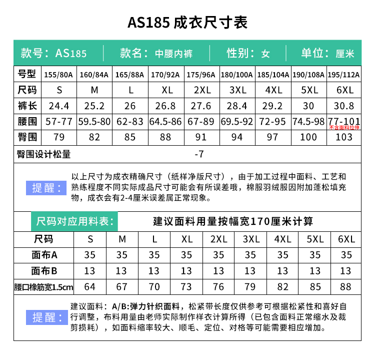 裁缝学苑AS185纯棉运动中腰内裤防走光女式短裤纸样女装服装打板裁剪图纸