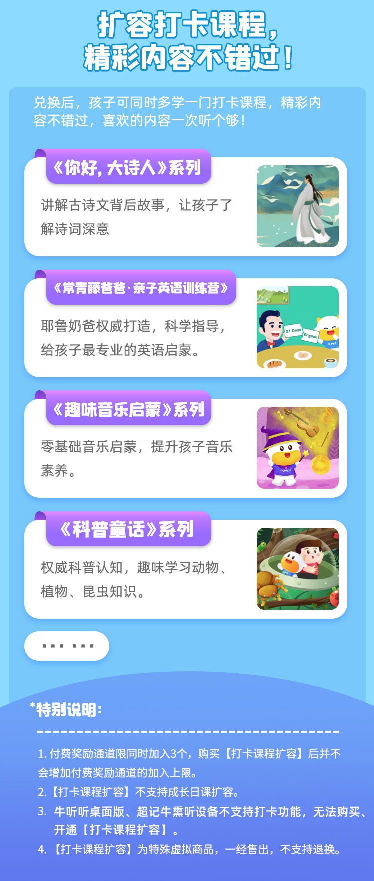 打卡课程扩容 虚拟服务商品,不支持退货退款 慧听牛不支持该功能
