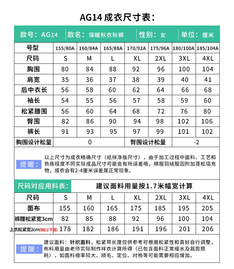 裁缝学苑AG14女士保暖内衣纸样 秒杀专用